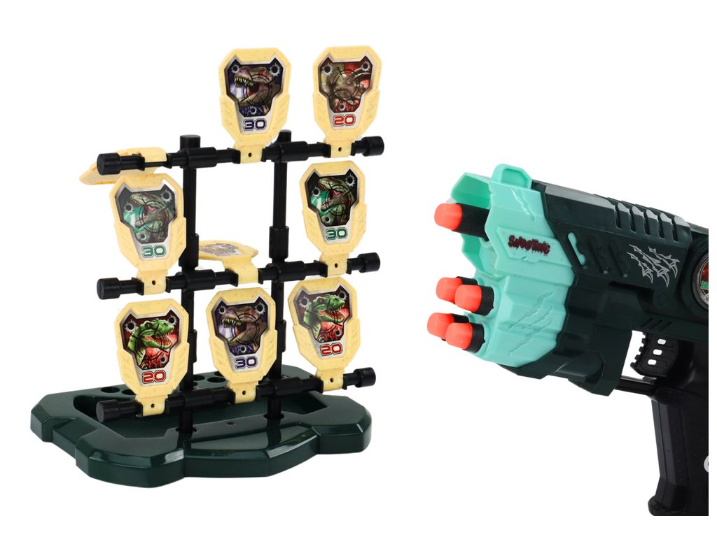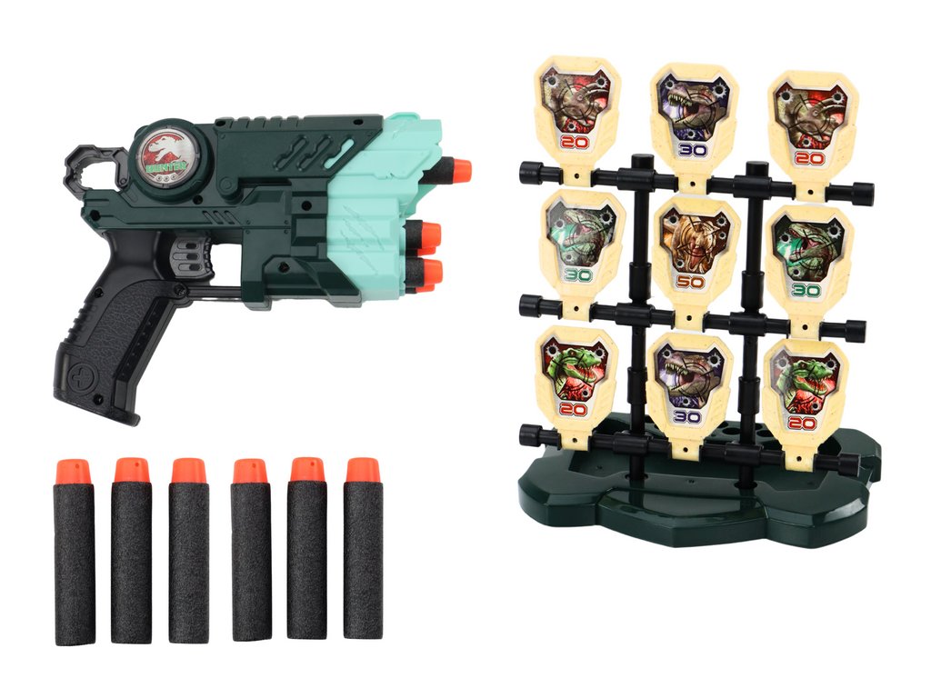 Sada pistole s terčem a pěnovými šipkami Dinosauři zelená