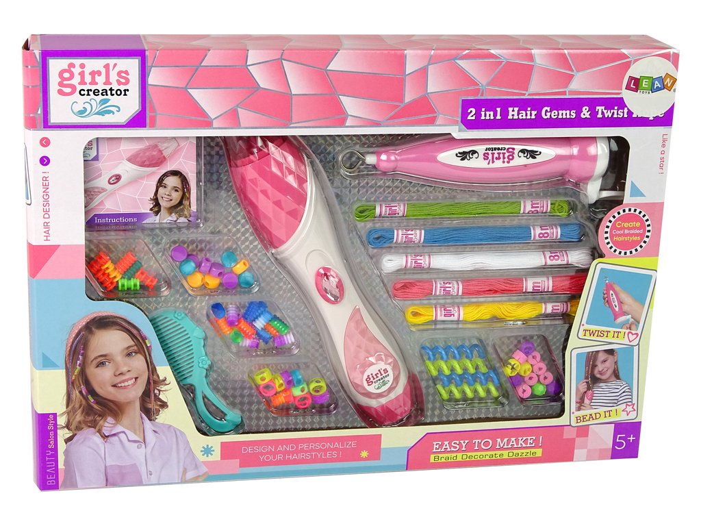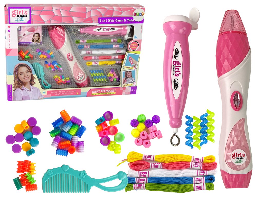 Vytvořte nezapomenutelné účesy s naší kompletní sadou na ozdobení vlasů korálky! Sada obsahuje speciální nástroje, které zjednodušují a zpříjemňují proces aplikace korálků na bavlněné nitě. Navíc, nástroj na točení nití Vám umožní experimentovat s různými efekty.
