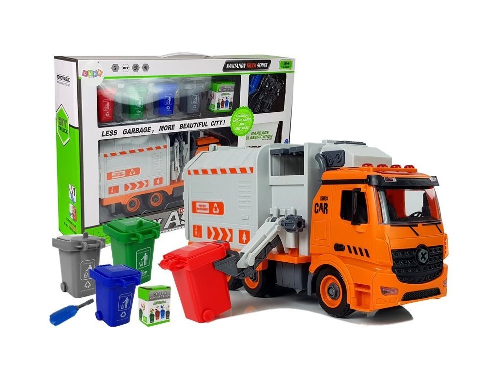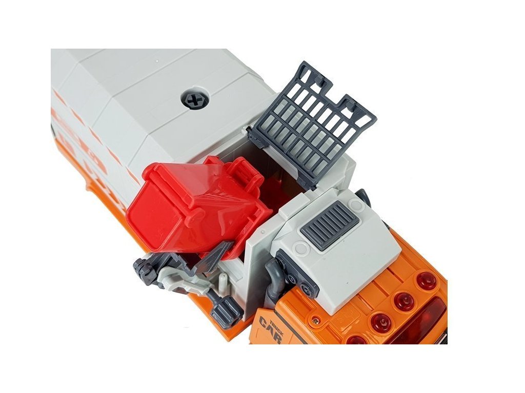 Oranžovo-šedé popelářské auto poskytne všem chlapcům dlouhé hodiny plné senzační zábavy. Tato pozoruhodná hračka bude senzačním doplňkem sbírky vozidel a hračkou, která se jen tak neomrzí.