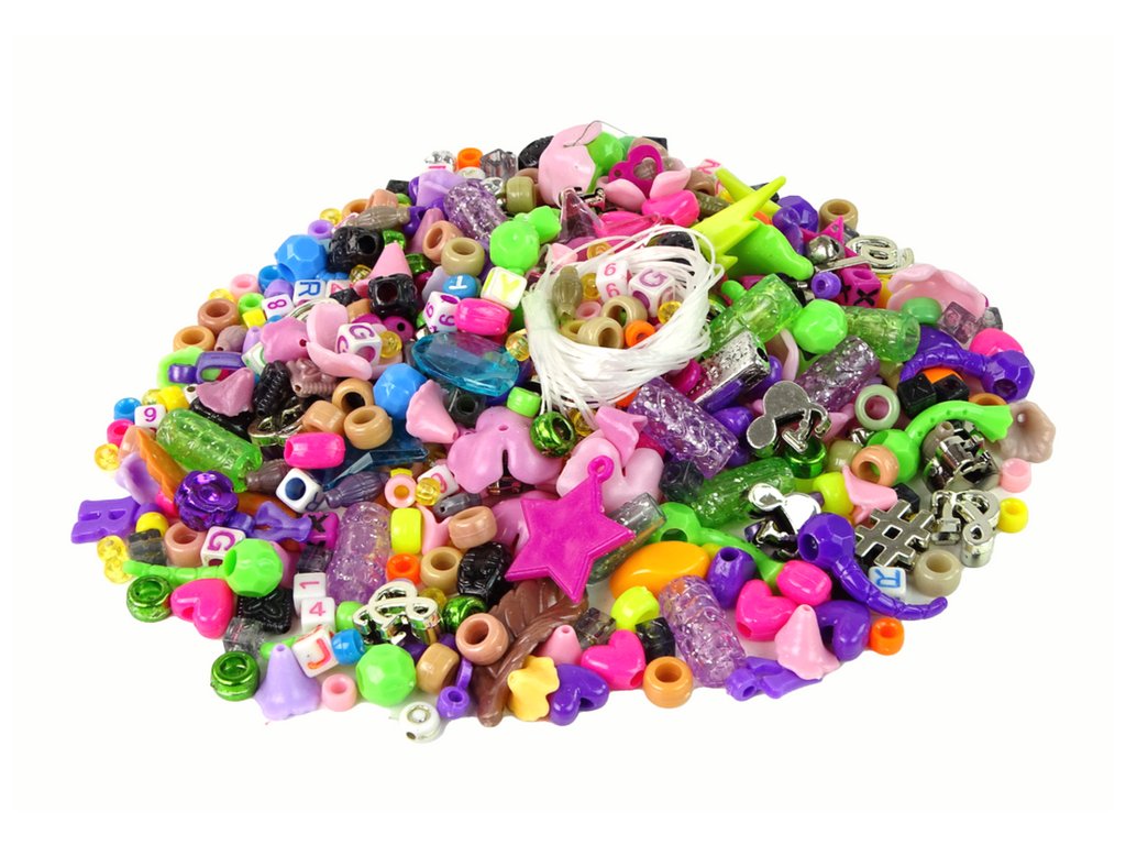Obsahuje různobarevné a různě tvarované korálky, které dětem umožňují experimentovat s různými vzory a kompozicemi. Korálky s písmeny dávají možnost náramky personalizovat vytvořením jmen na náramku.