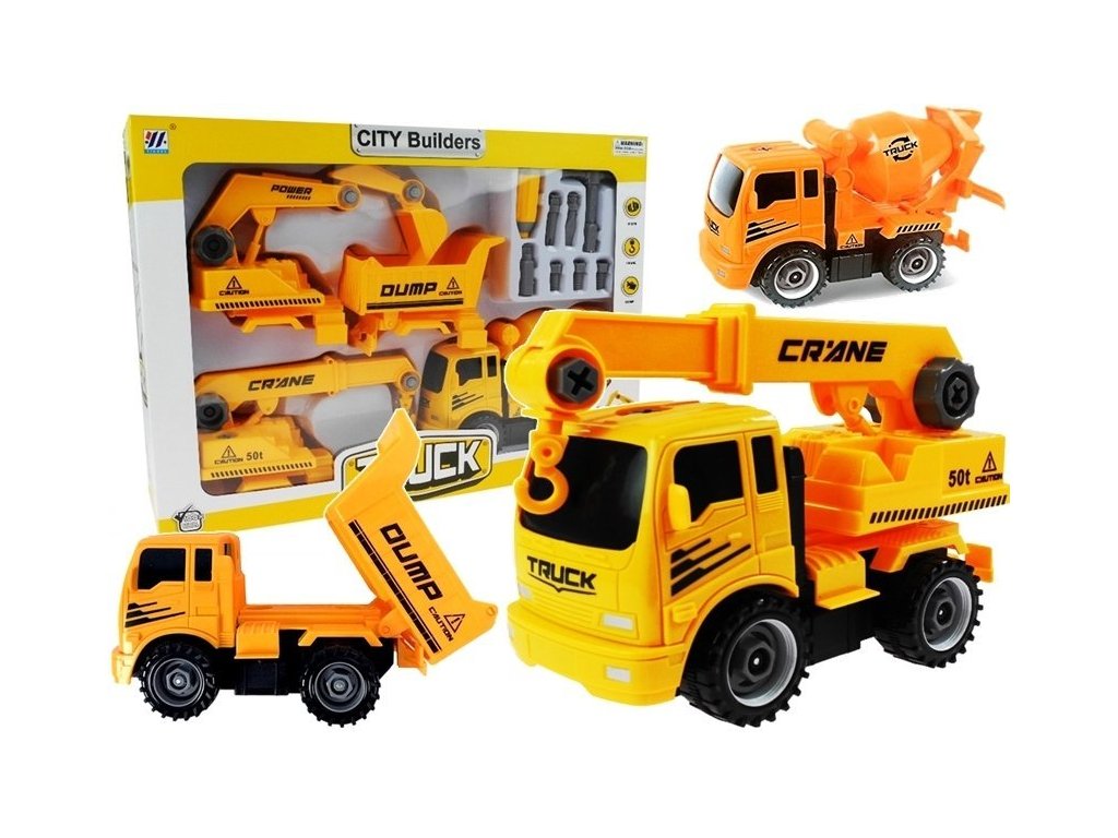 Auto (v závislosti na zvoleném modelu) lze rozložit na cca 6-7 dílů. Sada obsahuje jednu kabinu, mění se pouze přívěs auta. Hračka skvěle rozvíjí jemnou motoriku a schopnost logického myšlení.