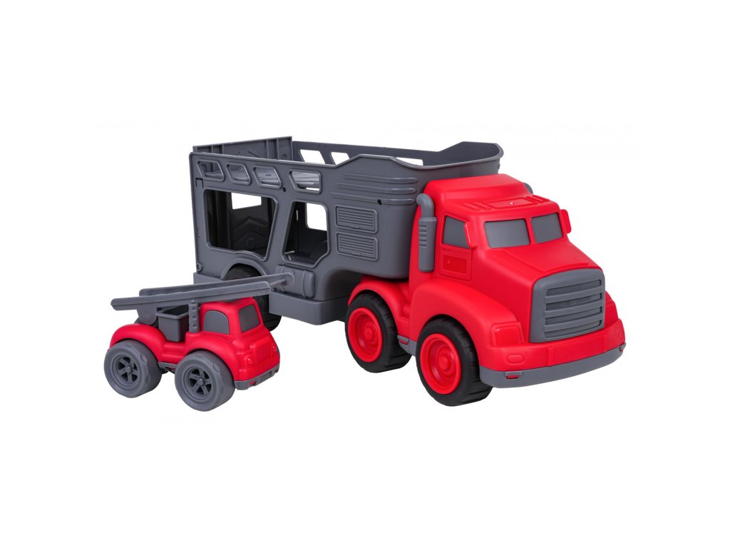 Sada vozidel s odtahovkou a autíčkem Hasiči pro děti od tří let. Sada je vyrobena z nejkvalitnějšího plastu v živých barvách. Bude to velká zábava pro malé milovníky stavebních vozidel. Auto hasiči má pohyblivá kola s pohonem předních kol, velmi snadno se pohybuje po povrchu. Můžeme také zvedat a spouštět žebřík.
