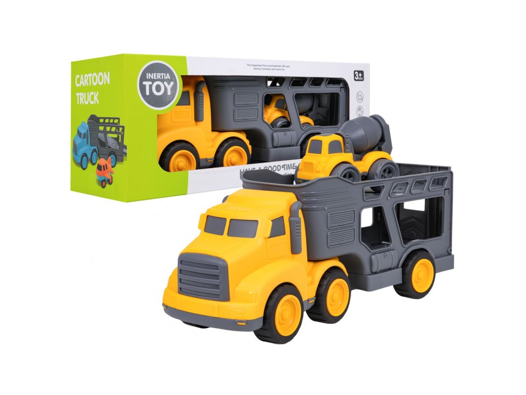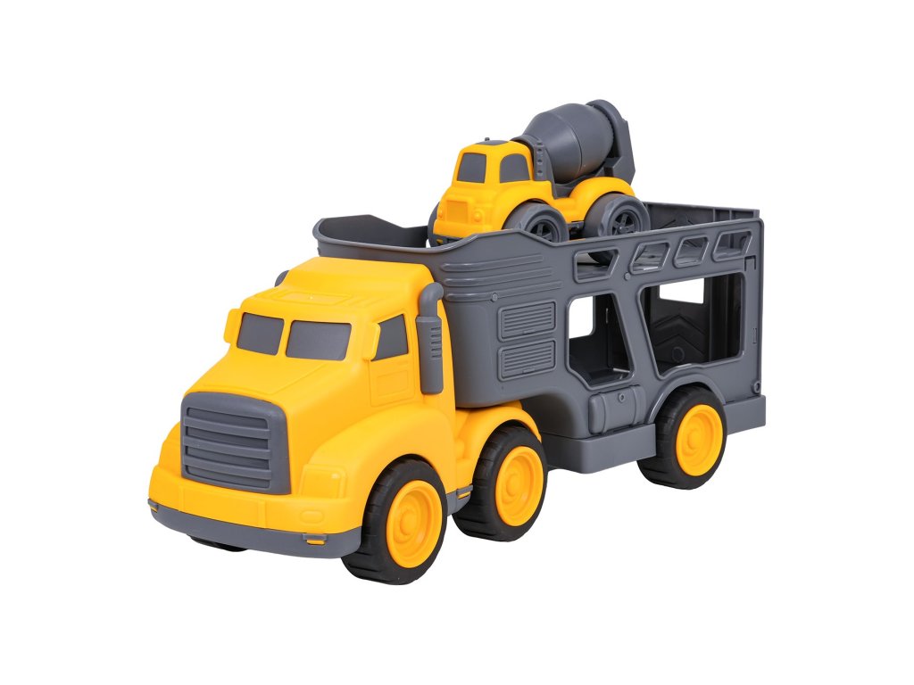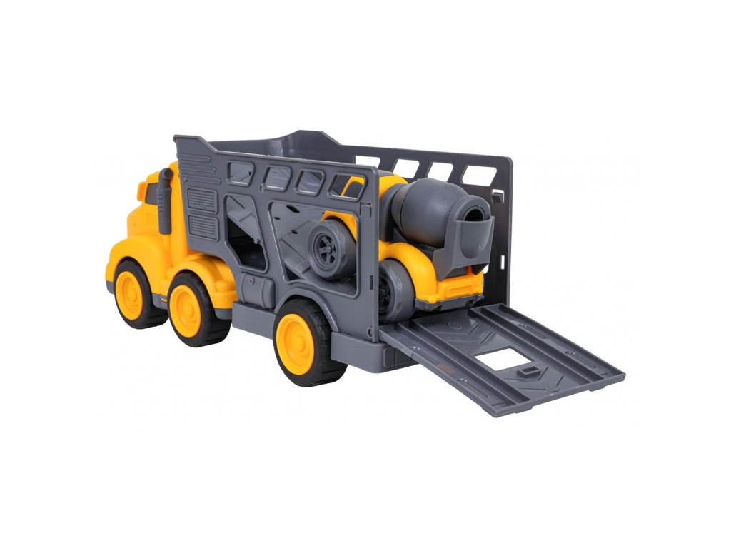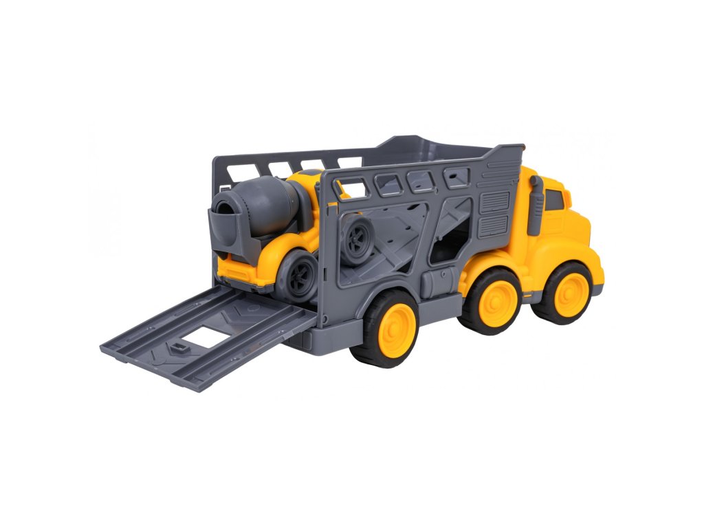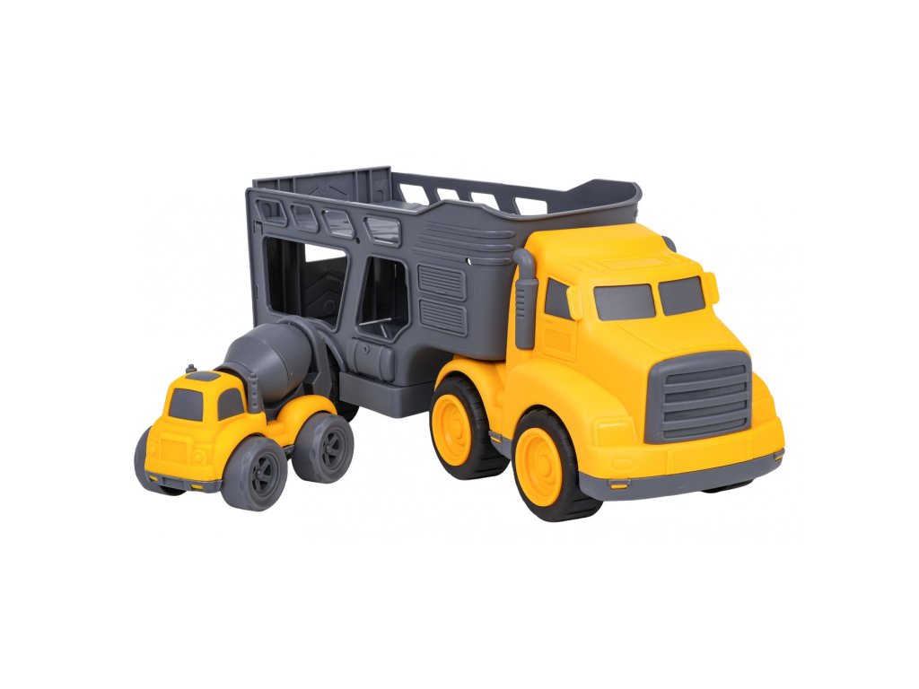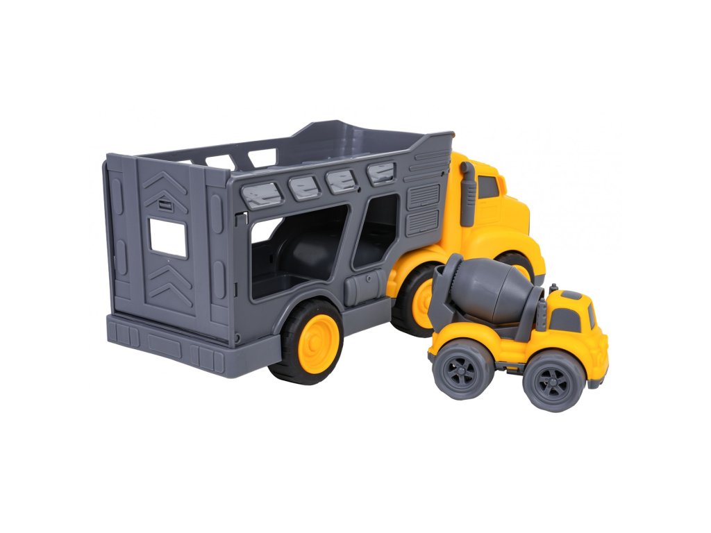 Sada vozidel s odtahovkou a míchačkou na beton pro děti od tří let. Sada je vyrobena z nejkvalitnějšího plastu v živých barvách. Bude to velká zábava pro malé milovníky stavebních vozidel. Auto míchačka má pohyblivá kola s pohonem předních kol, velmi snadno se pohybuje po povrchu. Můžeme také otáčet hruškou s betonem.