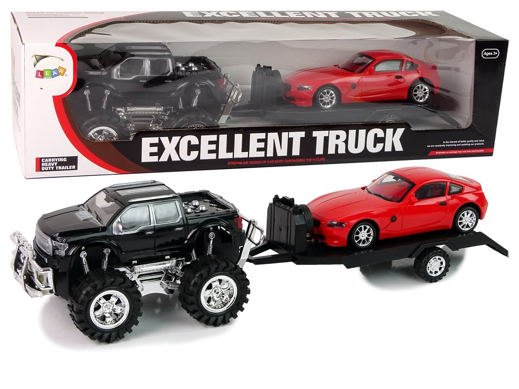 Terénní auto, pro které není žádná překážka příliš náročná. Perfektně funguje jak na asfaltu, tak na nerovných kamenech. Sada vytvořená pro milovníky aut, protože obsahuje až dvě auta v různých stylech. První z nich je černý MONSTER TRUCK s možností připojení přívěsu, který je součástí sady. Druhým je červené BMW, které lze převážet na přívěsu.