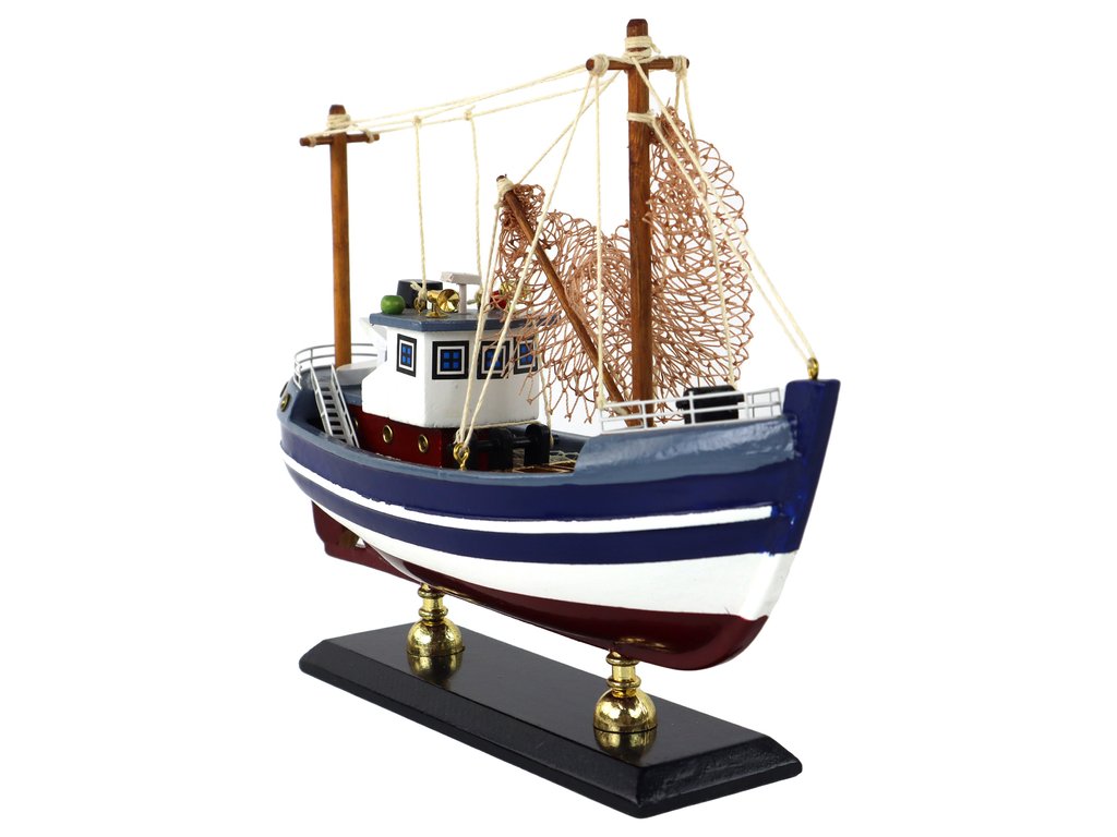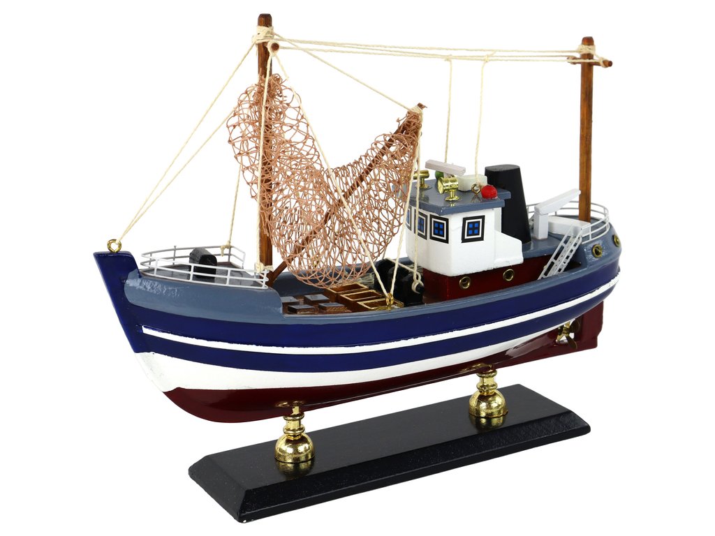 Tento model sběratelské lodi je jedinečným řemeslným dílem. Je umístěn na masivních dřevěných nohách, což mu dodává eleganci a sofistikovanost. Loď je tmavě modrá s bílými pruhy, což jí dodává klasický námořní vzhled.