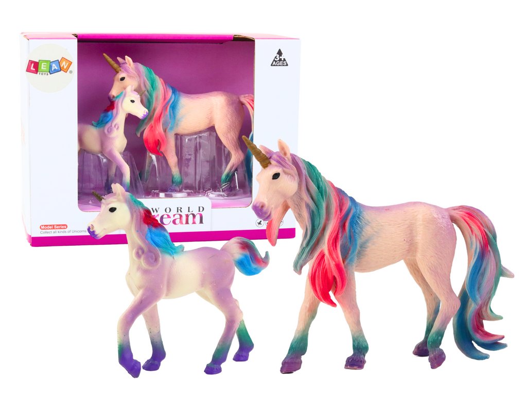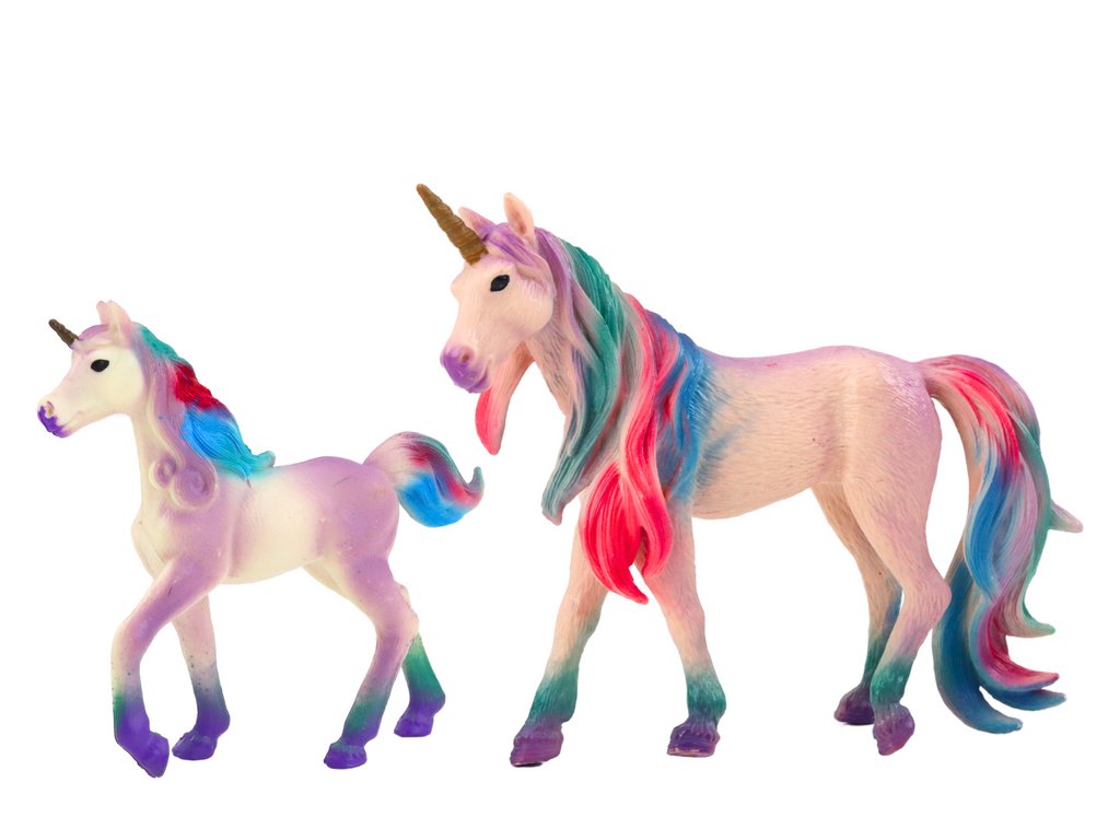 Figurky jednorožců, představující dospělého jednorožce s mládětem, jsou výjimečnou sadou, která jistě okouzlí každého milovníka těchto pohádkových bytostí. Oba jednorožci jsou fialové barvy, což jim dodává magický vzhled. Realisticky ztvárněné textury dělají figurky téměř živými, což dále zdůrazňuje jejich jedinečnost a pečlivé zpracování.