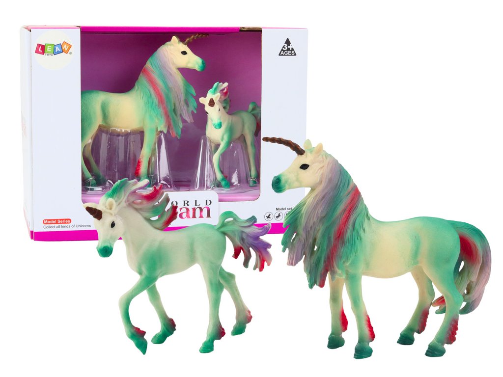 Figurky jednorožců, které představují dospělého jednorožce s malým, jsou jedinečnou sadou, která určitě okouzlí každou milovnici těchto pohádkových bytostí. Oba jednorožci jsou zelené barvy, což jim dodává magický vzhled. Realisticky ztvárněné textury způsobují, že figurky vypadají téměř jako živé, což ještě více zdůrazňuje jejich jedinečnost a pečlivé provedení.