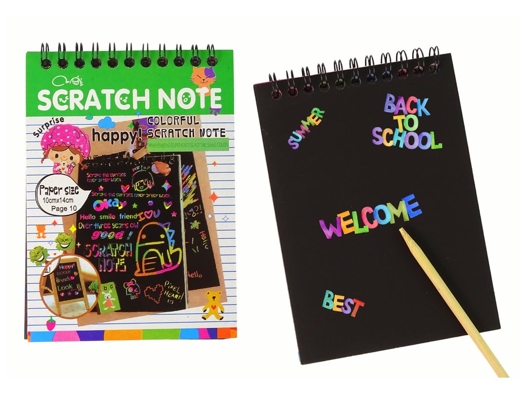 Stírací blok je kreativní a interaktivní produkt, který dětem přináší jedinečný zážitek z psaní a kreslení. Obsahuje 10 černých stránek. Klíčovým prvkem této hračky je možnost kreslit a psát do bloku odstraňováním černého povrchu pomocí speciální dřevěné špejle.