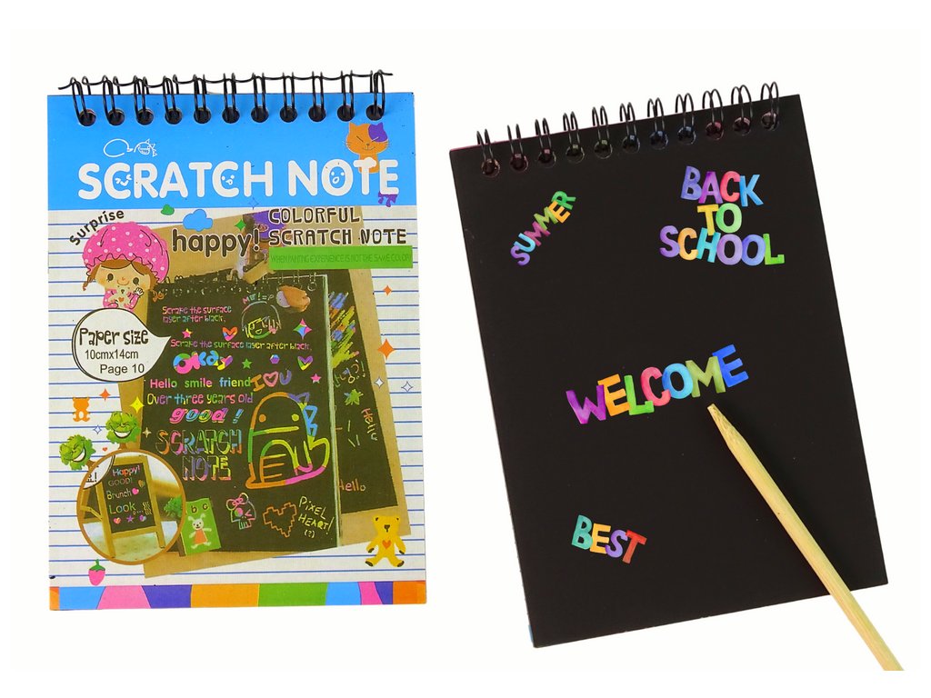 Stírací blok je kreativní a interaktivní produkt, který dětem přináší jedinečný zážitek z psaní a kreslení. Obsahuje 10 černých stránek. Klíčovým prvkem této hračky je možnost kreslit a psát do bloku odstraňováním černého povrchu pomocí speciální dřevěné špejle.