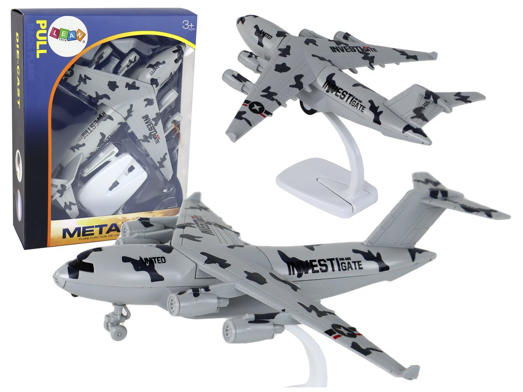 Tento model vojenského letadla je působivý svým vzhledem. Je natřen výrazným vzorem moro, který mu dodává vojenský nádech a působí velmi autenticky. Barevné schéma a vzor evokují vojenský styl, což hračce dodává skutečný charakter.