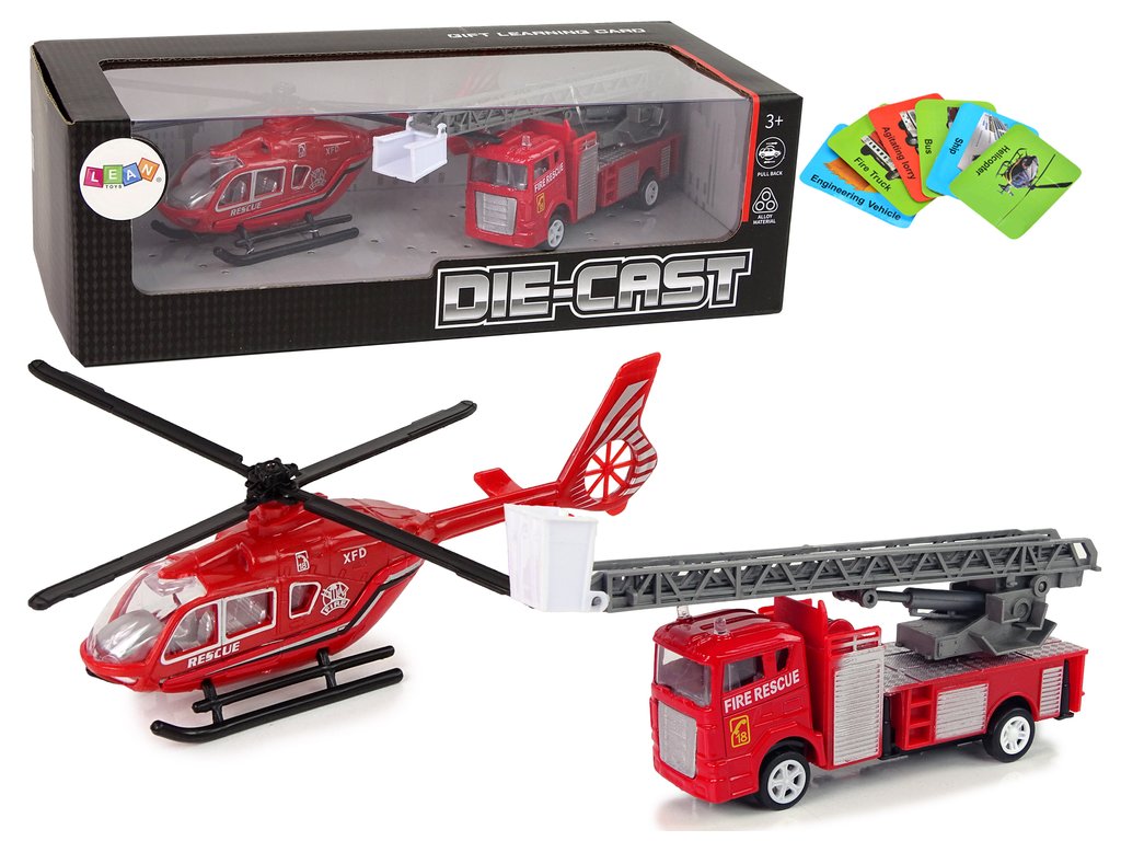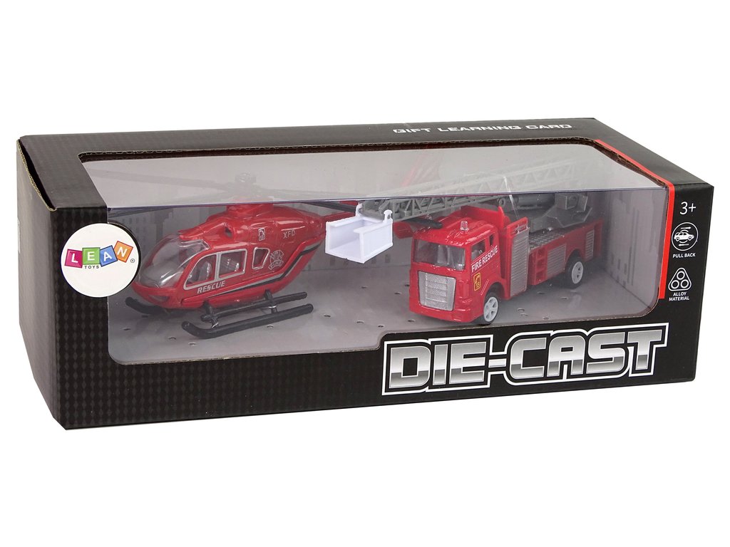 Sada hasičský vrtulník a hasičské auto z žebříkém