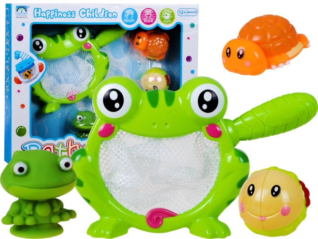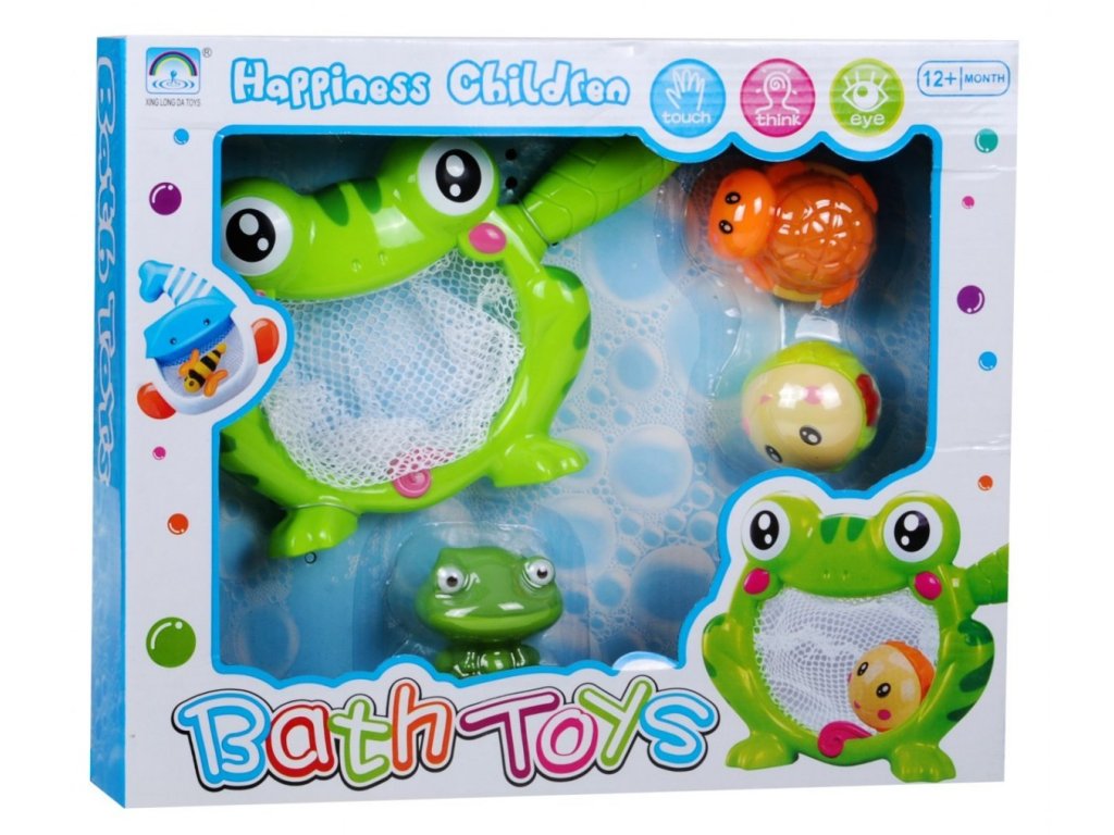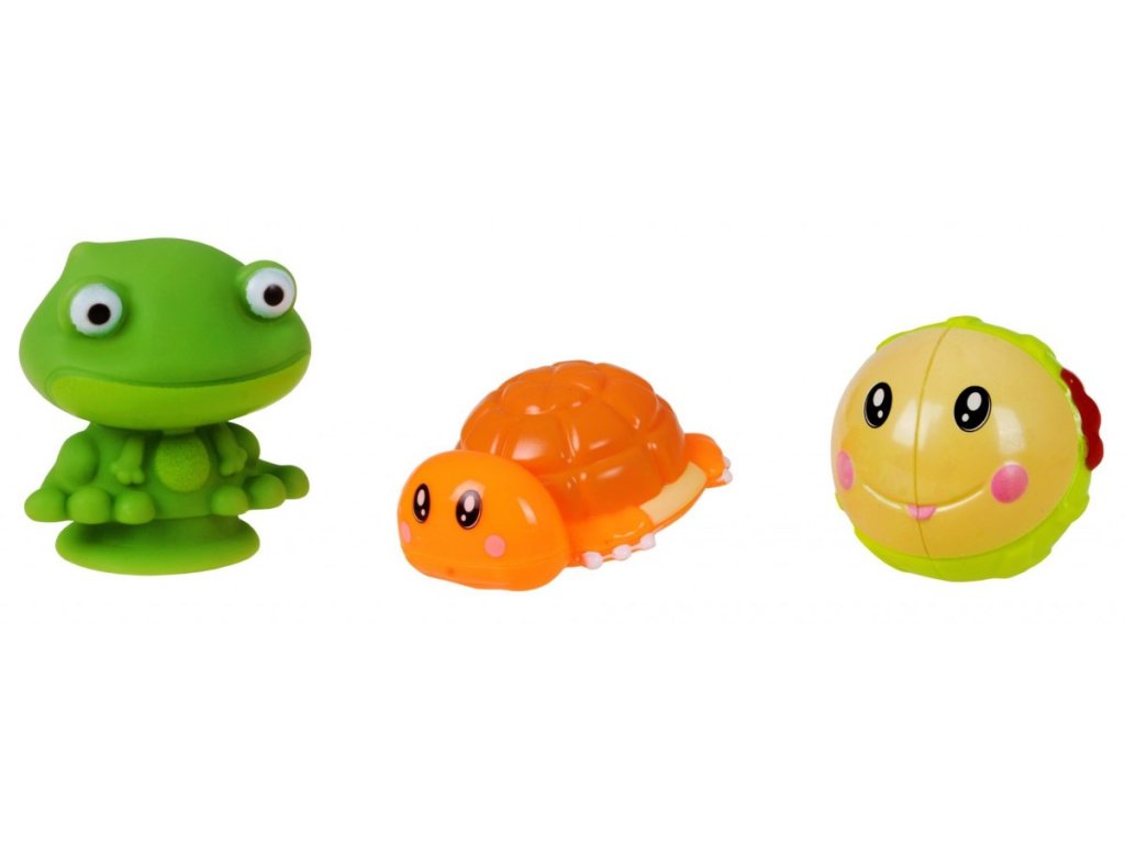- 3 zvířátka: plastiková želvy, rybička a gumová žabička,