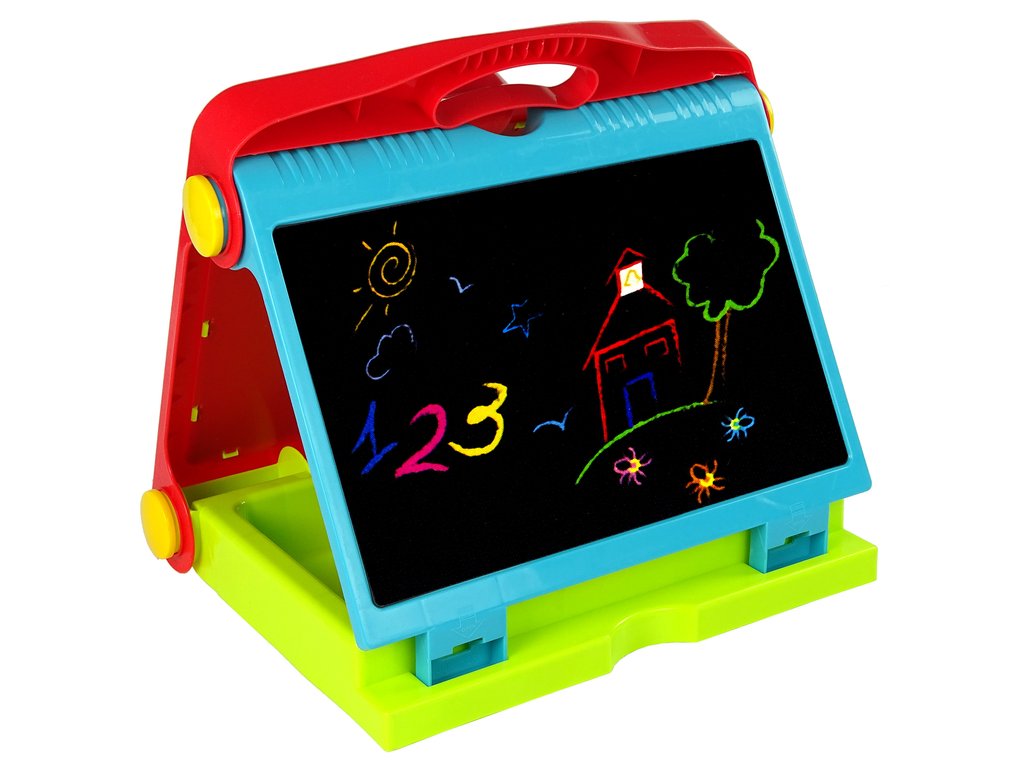Nová, naučná, velká tabule potěší každého malého fanouška výtvarných prací. Na tabuli můžete psát fixem nebo křídou, kreslit různé vzory. Deska je velmi pěkně a pečlivě vyrobena. Deska se dá rozložit na 2 strany.