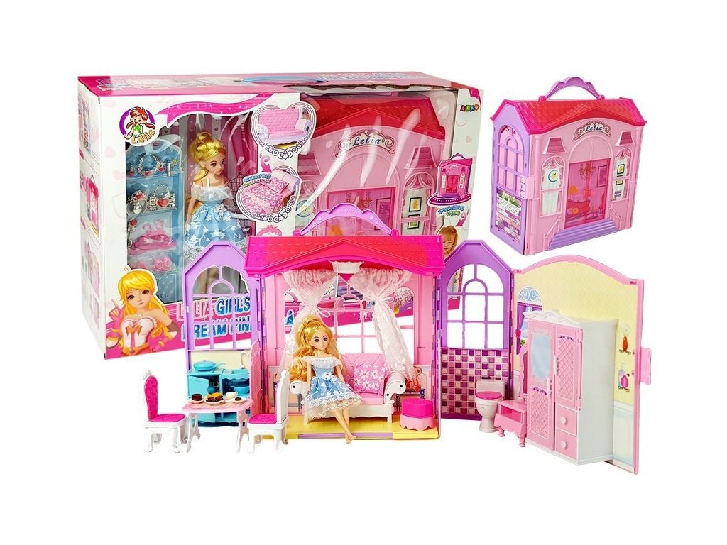 Každá dívka sní o vlastním domečku pro panenky, navíc si jej může vzít kdekoliv s sebou, jelikož lze jednoduše složit a přenášet díky rukojeti. Krásný barevný domeček s šatníkem jistě potěší každé dítě. Sada obsahuje elegantní panenku s šatičkami.