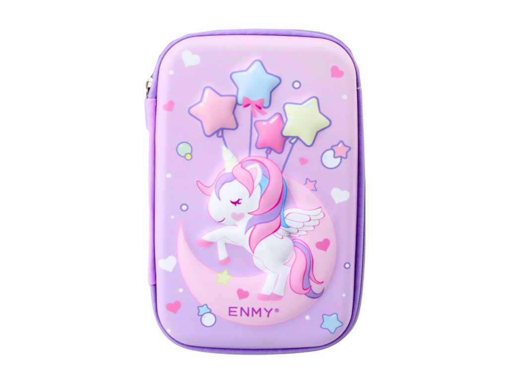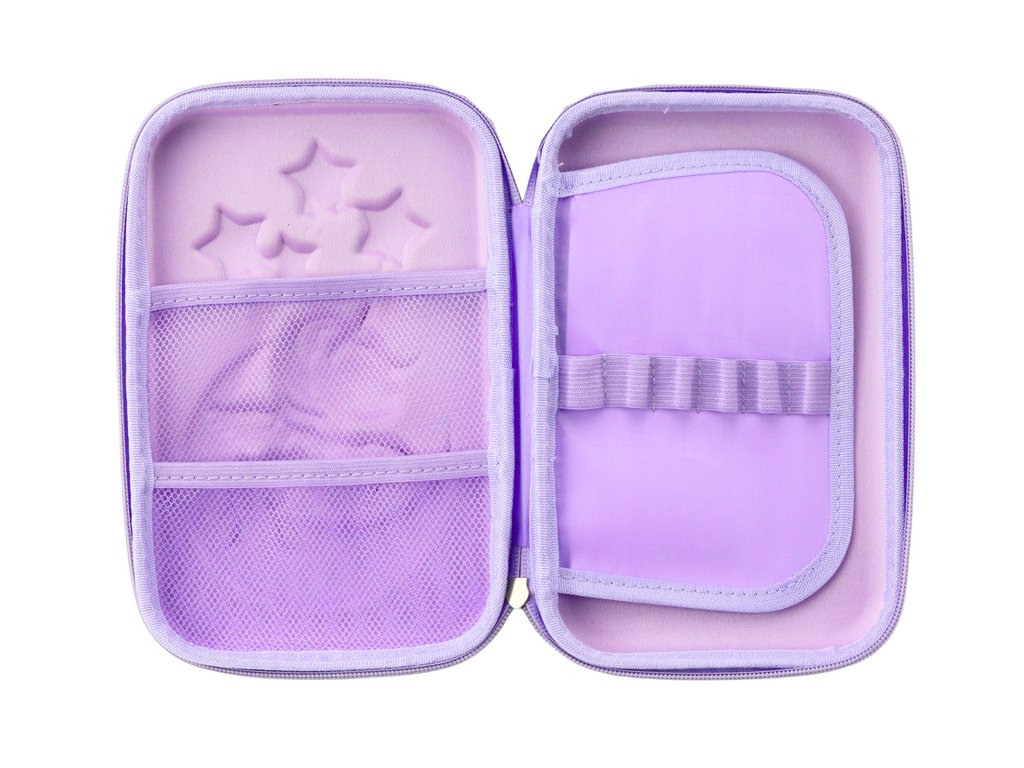 Školní rozkládací penál s 3D Jednorožcem 23x15x5 cm fialový