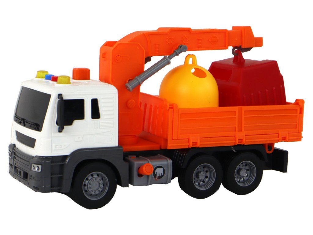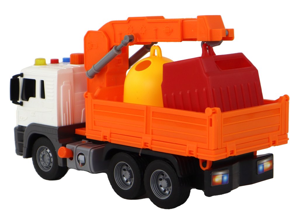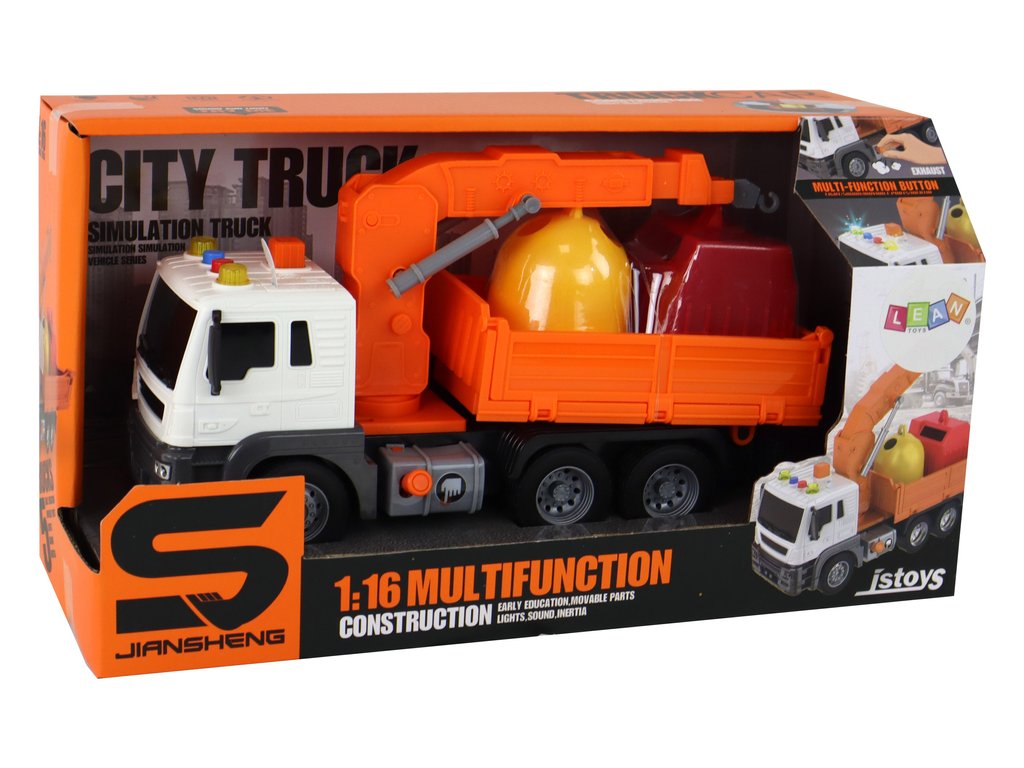 Sběrné autíčko 1:16 s jeřábem a efekty oranžové
