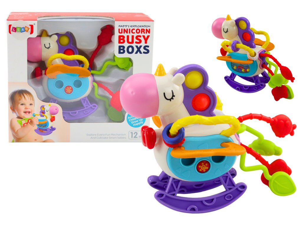 Hračka je bezpečná, bez ostrých hran a ideální pro malé ruce, což usnadňuje uchopení a manipulaci. Tento roztomilý jednorožec přinese vašemu dítěti radost z objevování nových textur, zvuků a podnětů.