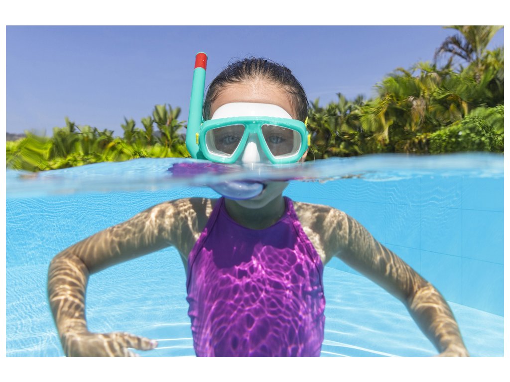 Nyní můžete svému dítěti poskytnout podvodní potápěčskou soupravu a zároveň mu poskytnout pevnou ochranu a nezapomenutelnou zábavu v bazénu nebo na dovolené u vody. Tato sada se vyznačuje neuvěřitelným komfortem při používání. Čočky obsahují ochrannou vrstvu proti UV záření, díky které dokonale chrání oči vašeho dítěte před slunečními paprsky. Měkký šnorchl a brýle poskytnou dítěti pohodlí, díky čemuž bude pro ně ještě zajímavější a pohodlnější stříkat ve vodě a objevovat podmořský svět. Sada je určena pro děti ve věku 3 let.