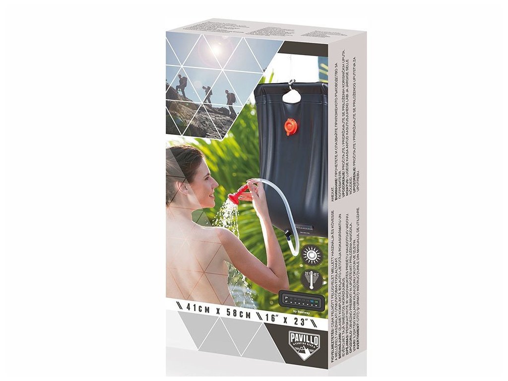 Solární turistická sprcha, která se bude hodit při kempování či na zahradě. Umožňuje ohřívat vodu slunečními paprsky až na 53ºC, sprcha je vybavena uzavíracím kohoutkem, trubicí se sprchovým sítkem a odolným madlem.