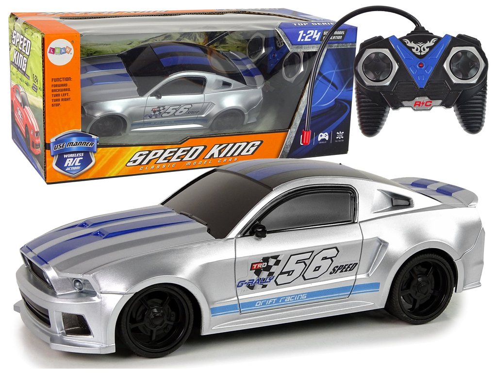 Dálkové ovládání, které je součástí sady, Vám umožní řídit malý model auta se dvěma samostatnými tlačítky pro jízdu vpřed/vzad a do stran. Model ve stříbrné barvě je vyroben v měřítku 1:24.