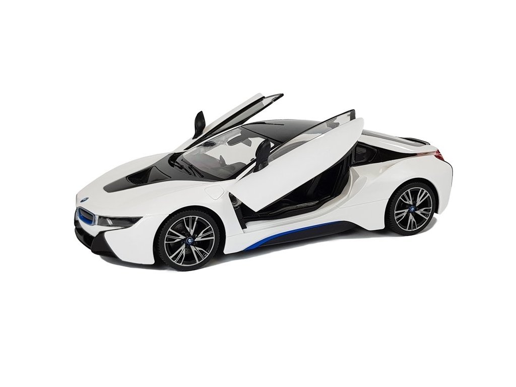 Sportovní autíčko BMW i8 Rastar na dálkové ovládání RC s automatickými dveřmi 1:14 bílé