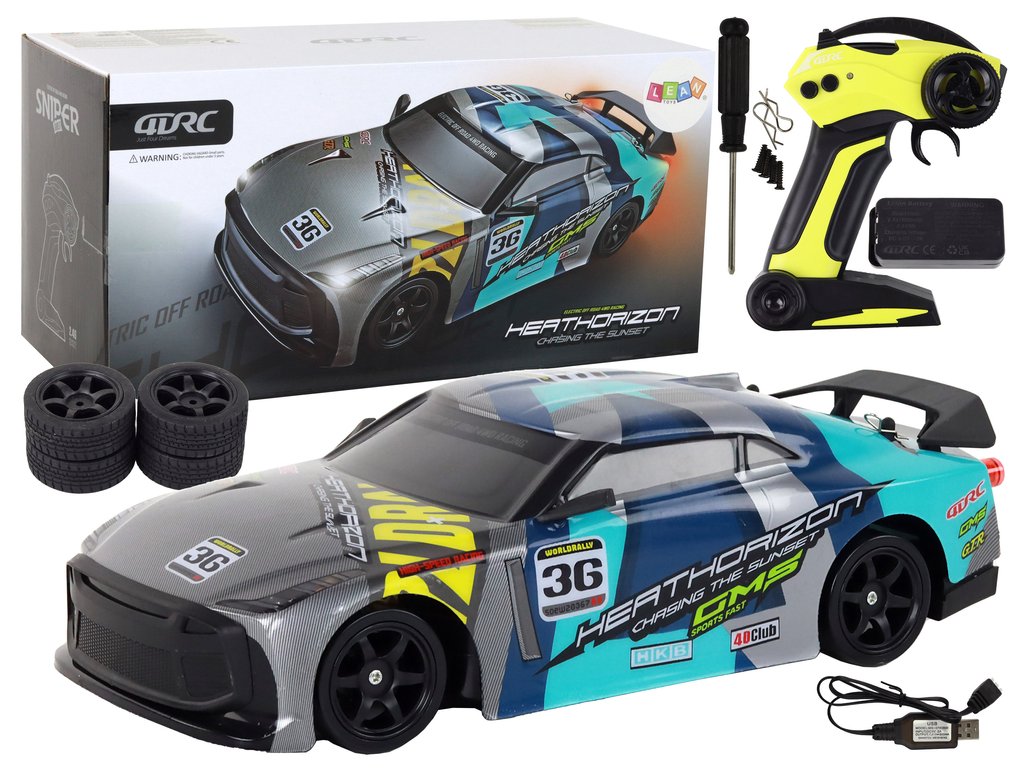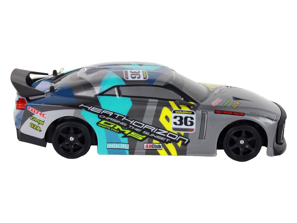 Sportovní RC auto na dálkové ovládání je ideální hračkou pro milovníky rychlé a vzrušující jízdy. Šedě zbarvené auto je zdobeno mnoha barevnými sportovními tvary, které mu dodávají dynamický a atraktivní vzhled. Součástí sady je dálkové ovládání, takže uživatel může převzít plnou kontrolu nad vozidlem.