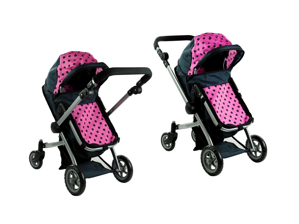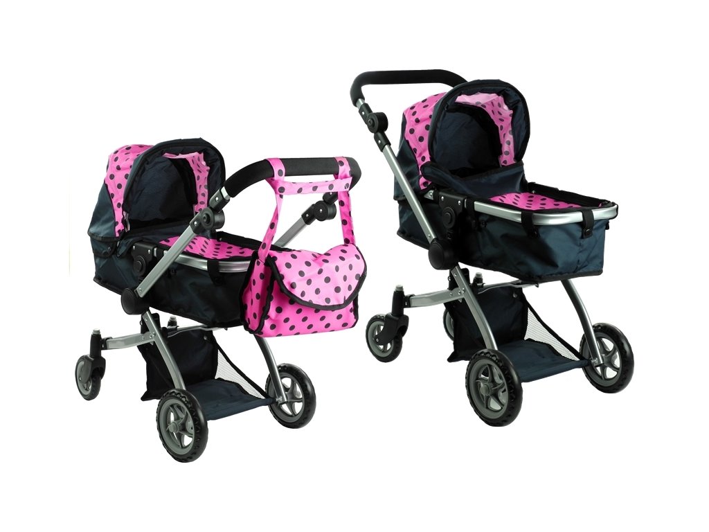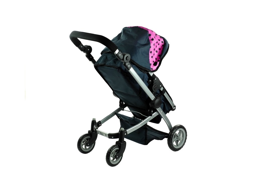 Kočárek pro panenky Alice 2v1 černo-růžový