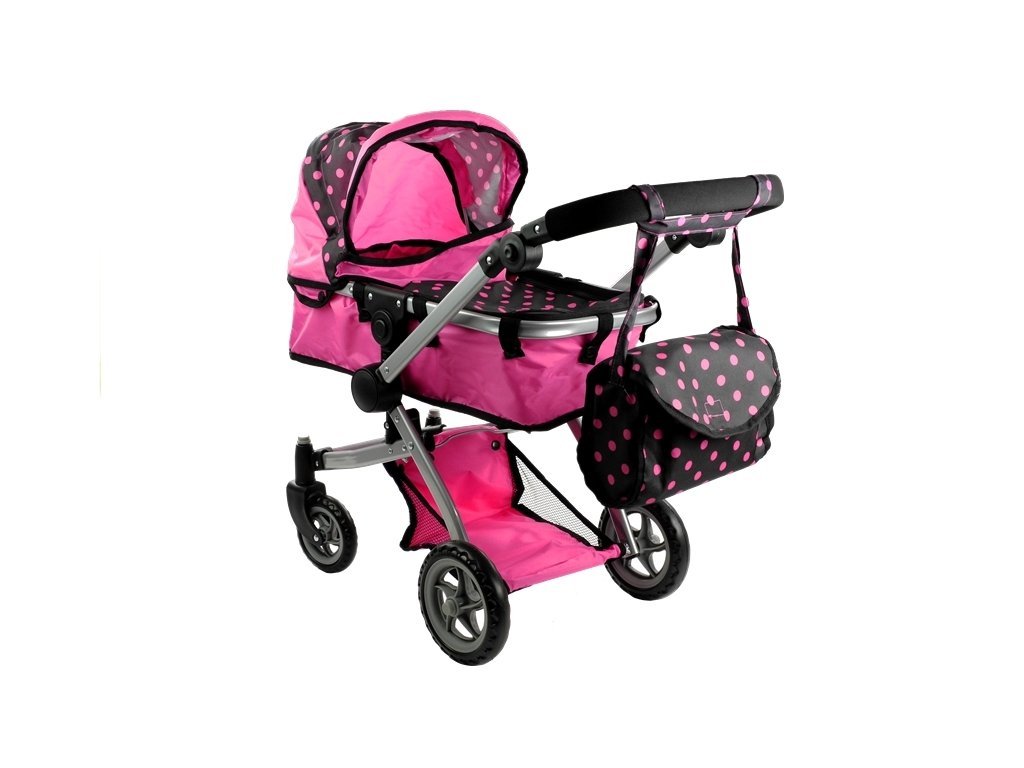 Kočárek pro panenky Alice 2v1 růžovo-černý