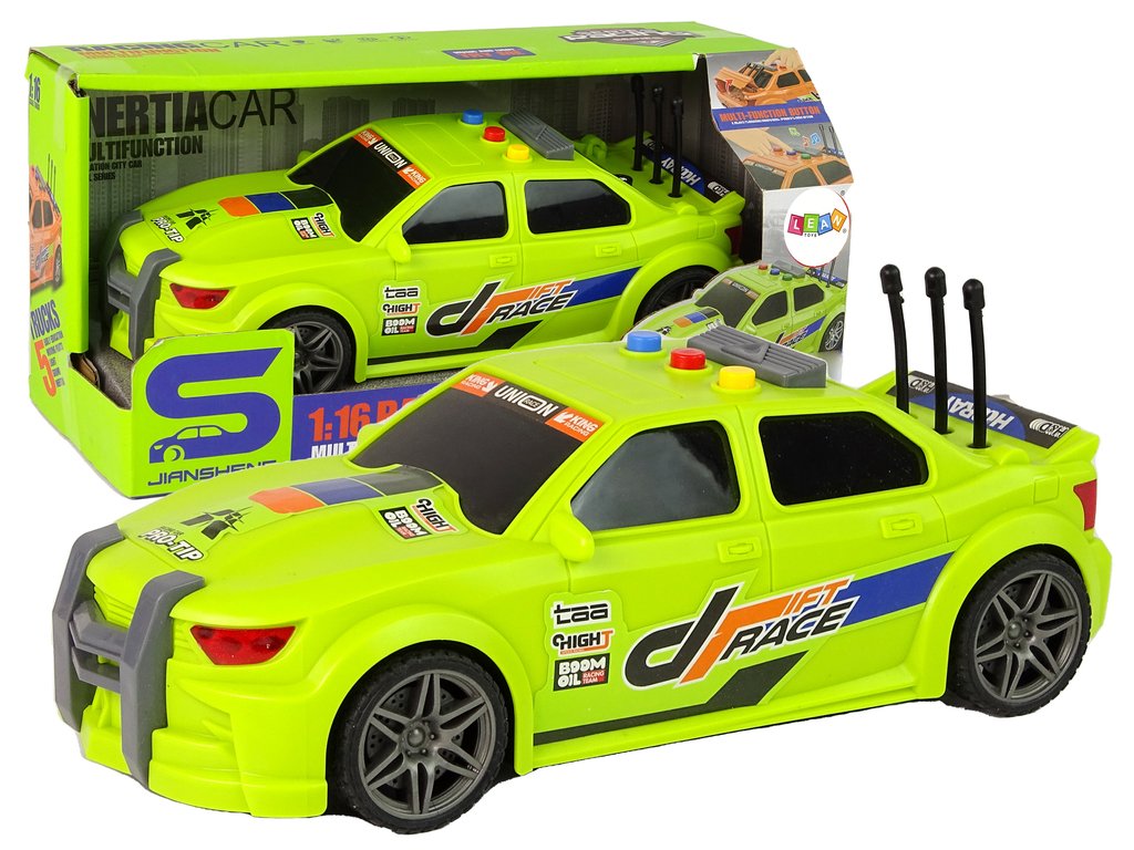 Jestli vaše dítě miluje hudbu a sportovní auta, máme pro něj perfektní kombinaci. Tento model mu přinese spoustu zábavy a zcela jistě se jen tak neomrzí. Vydejte se s námi do světa nezapomenutelných dobrodružství za volantem našeho úžasného auta v měřítku 1:16, v zelené barvě, ozdobeného závodními nálepkami!