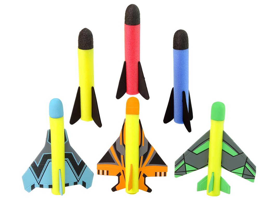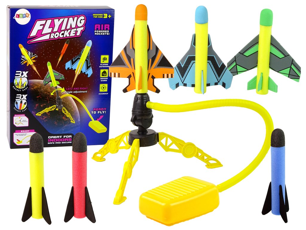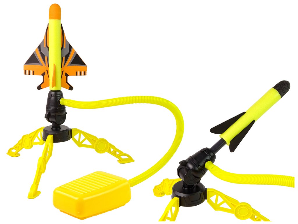 - - Umístěte rakety na sběrnou trubku, ke které je připojen polštářek, a poté rychlým pohybem polštářek stiskněte. Tlak, který takto vznikne uvnitř celé hračky, vyrazí raketu vysoko do vzduchu! Podívejte se, kdo dokáže vystřelit dál? Veselé soutěžení a skvělá zábava na dlouhé hodiny. Běž, skákej, vystřel. Uvidíme, čí raketa doletí výš a dál!