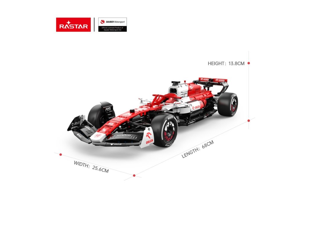 Spojte zábavu ze stavění s dynamikou jízdy – model Alfa Romeo F1 C42 v měřítku 1:8 od značky RASTAR nabízí jedinečný zážitek. Tato rozsáhlá stavebnice obsahuje 2261 dílků z kvalitního plastu ABS a umožňuje sestavit realistický RC monopost s gumovými koly, precizním zpracováním a elektrickým pohonem. Ovládání probíhá přes dálkový ovladač, který umožňuje pohodlné řízení sestaveného modelu. Ideální dárek pro technické nadšence a fanoušky motorsportu od 14 let.