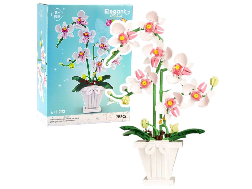 Dopřejte si nádech luxusu a originality se stavebnicí, která spojuje kreativní skládání s dekorativním kouzlem. Elegantní orchidej byla navržena s důrazem na detaily – od jemných bílých a růžových květů, přes realistické zelené listy až po moderní květináč. Hotový model působí jako skutečná rostlina, která však nikdy nezvadne a nevyžaduje péči.