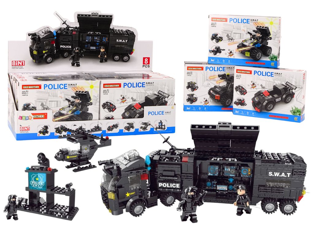 Sada stavebnicových kostek s tématem speciálních služeb, která dětem umožňuje objevování fascinujícího světa speciálních operací. Sada obsahuje různé modely, včetně základny, lodi, letadla a terénních vozidel, které zajistí hodiny kreativní zábavy a vzdělávání. Sada nabízí různé designy vozidel speciálních služeb, jako jsou základna, loď, letadlo a terénní vozidla. Každý model vyniká jedinečným designem a konstrukcí, což činí sadu atraktivní a zajímavou pro děti.