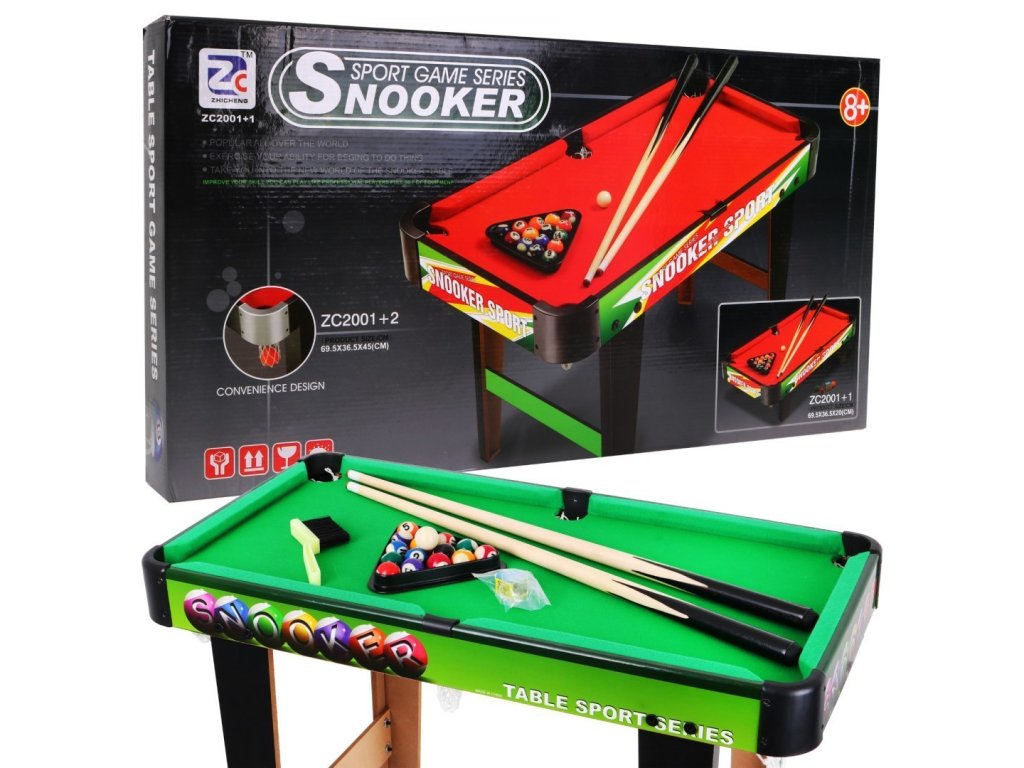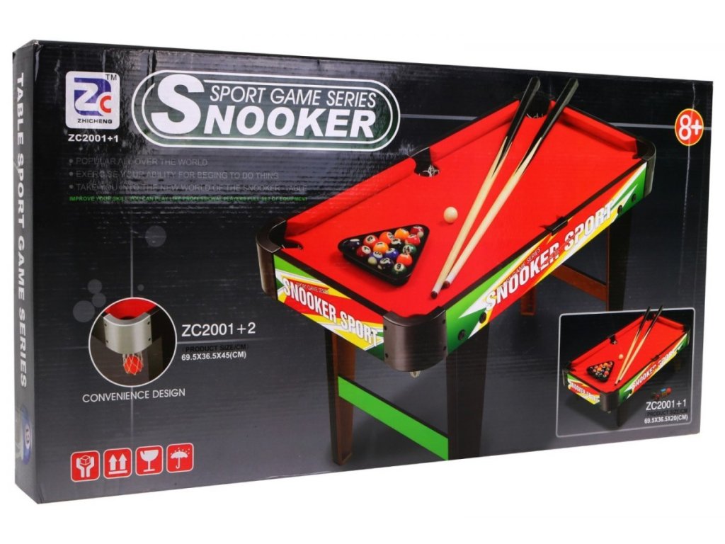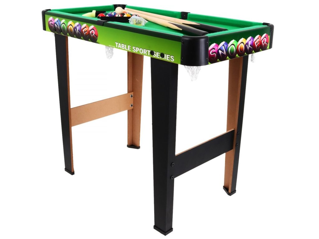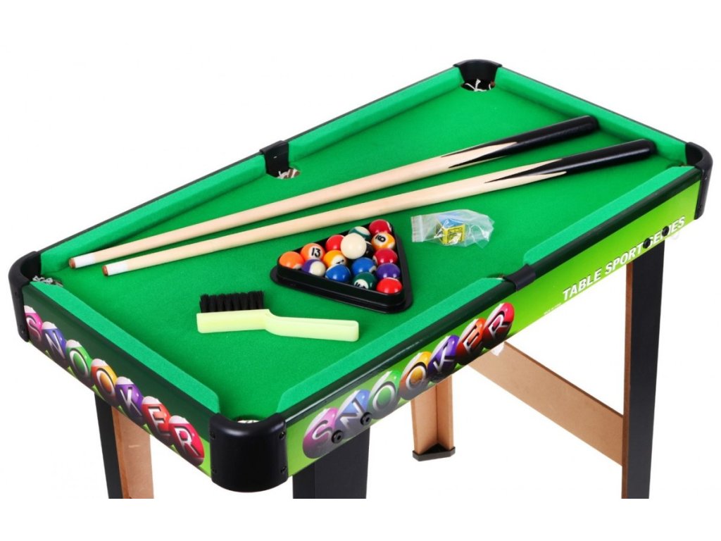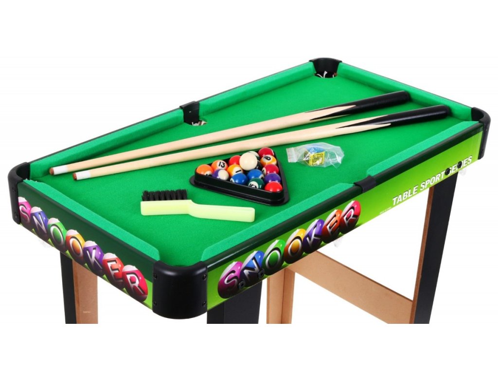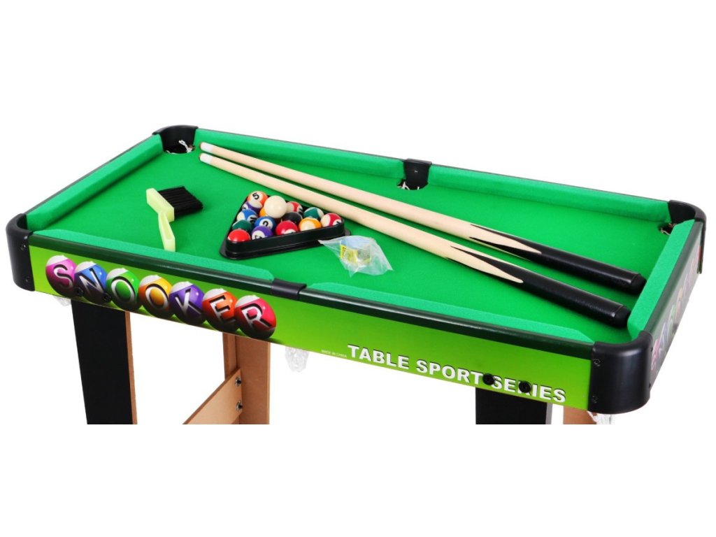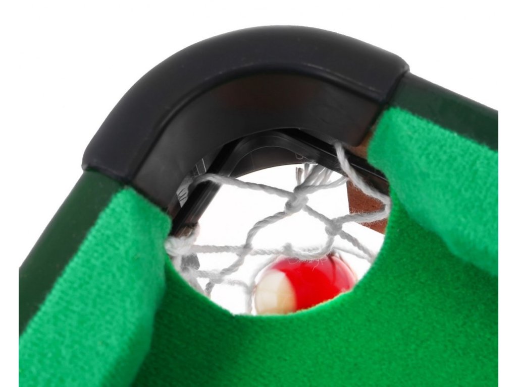Představujeme vám úžasný mini kulečníkový stůl s příslušenstvím. Hrací plocha je obložena odolným zeleným materiálem. Každý ze 6 důlků má síť, což usnadňuje uchycení míčků.