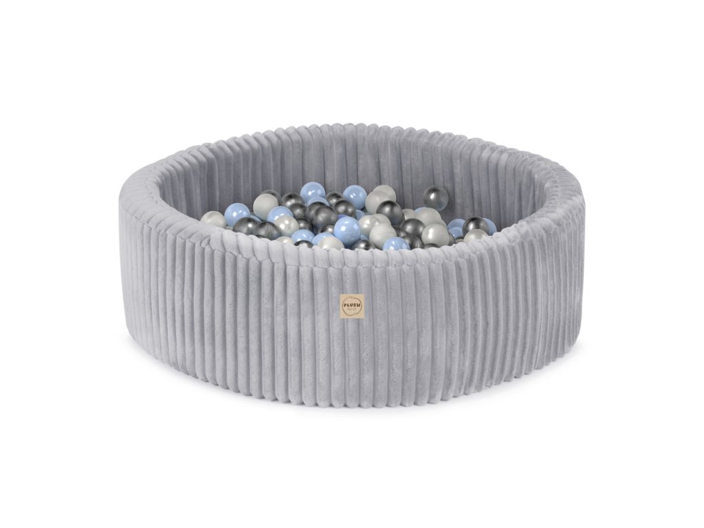 Suchý bazén kulatý Puffy Lamell (šedý) Ø 90 × 30 cm s 200 perleťovými míčky