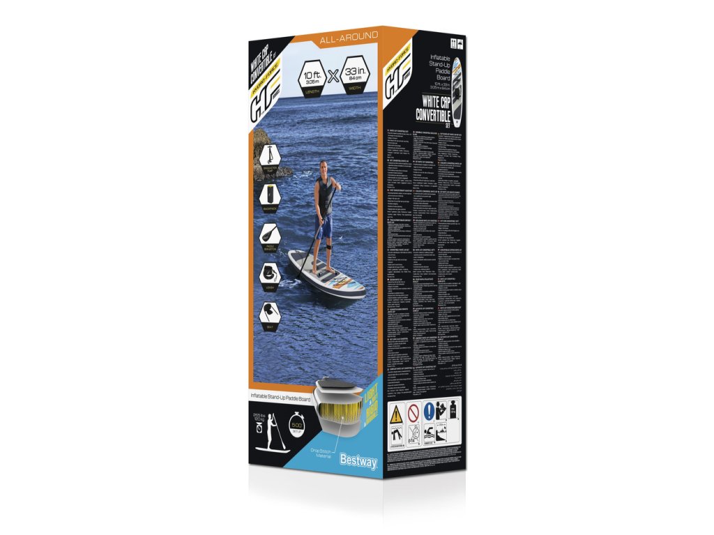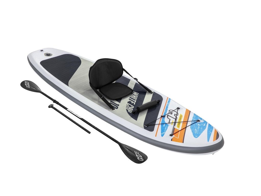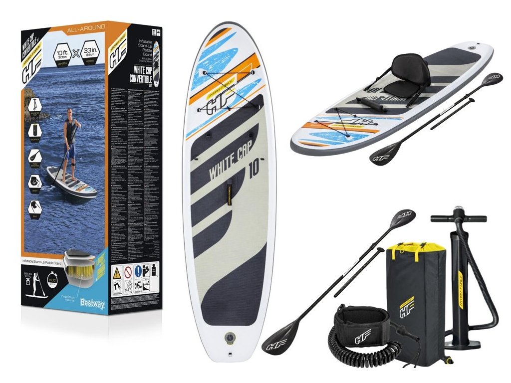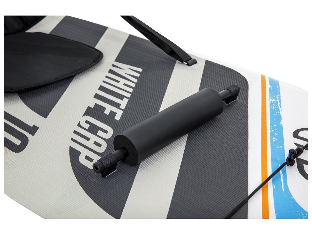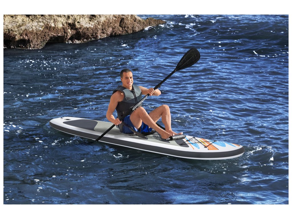 Toto prkno je označeno jako univerzální, což znamená, že má ideální tvar pro bezpečnou a multifunkční jízdu a snadno se přemění na kajak s přiloženým sedákem a opěrkou na nohy.