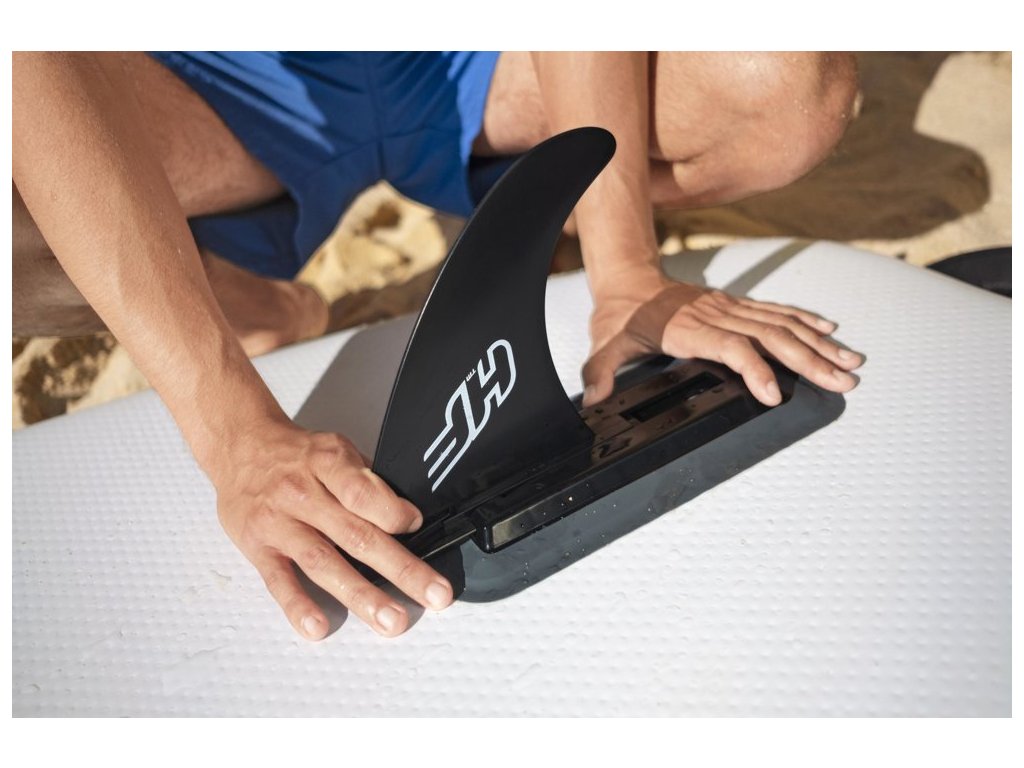 Lehké veslo přiložené k setu výrazně usnadňuje pohyb. Odnímatelná ploutev zvyšuje řídicí sílu a rychlost, díky čemuž se uživatelé mohou cítit jako profesionálové na vodě! Po odpojení ploutve získáme kompaktní, elegantní produkt, který zabírá velmi málo místa. Deska je také vybavena vodící lankem, díky němuž nikdy nesjedete z prkna, a pohodlným cestovním pytlem, který přepravu nafouklé desky činí velmi příjemnou.