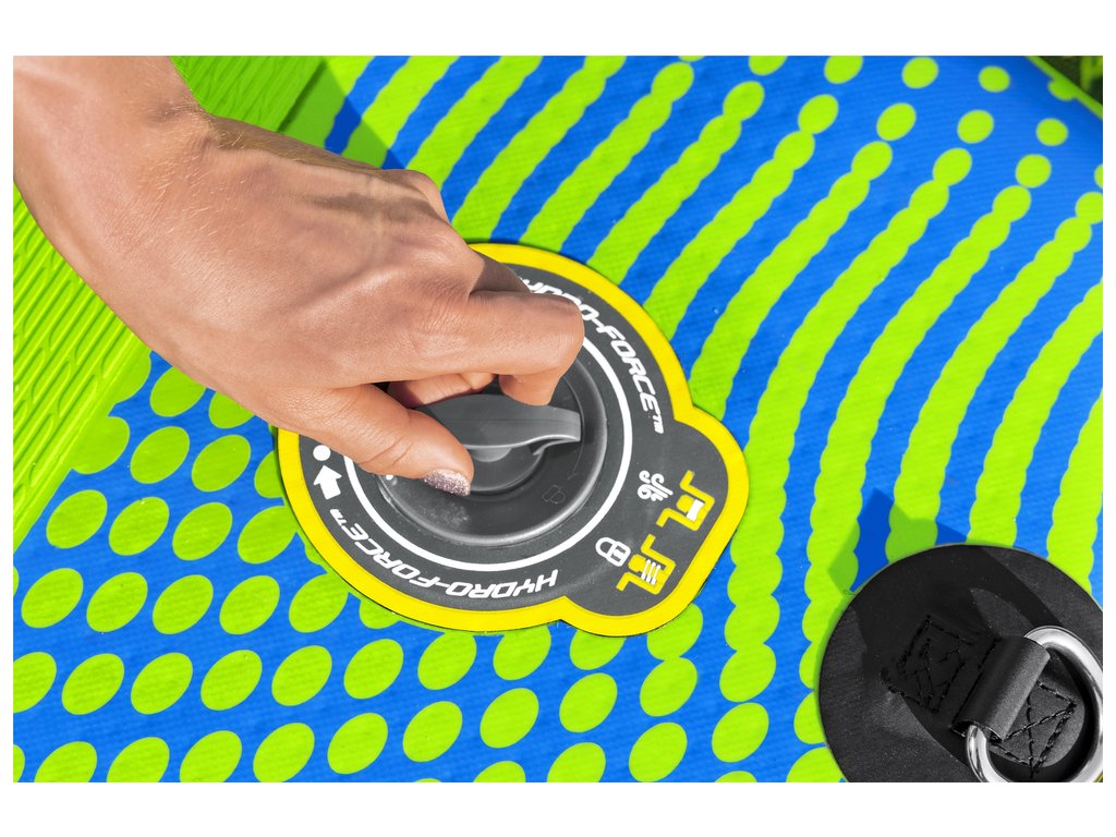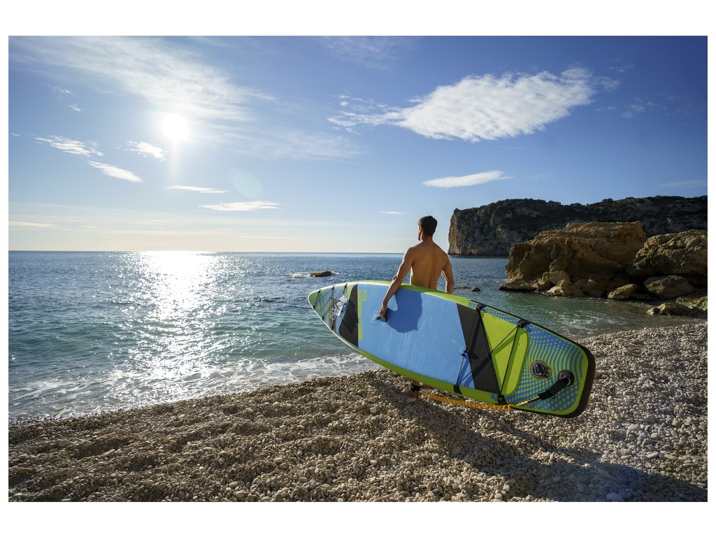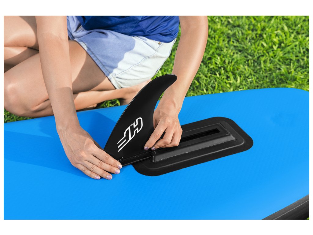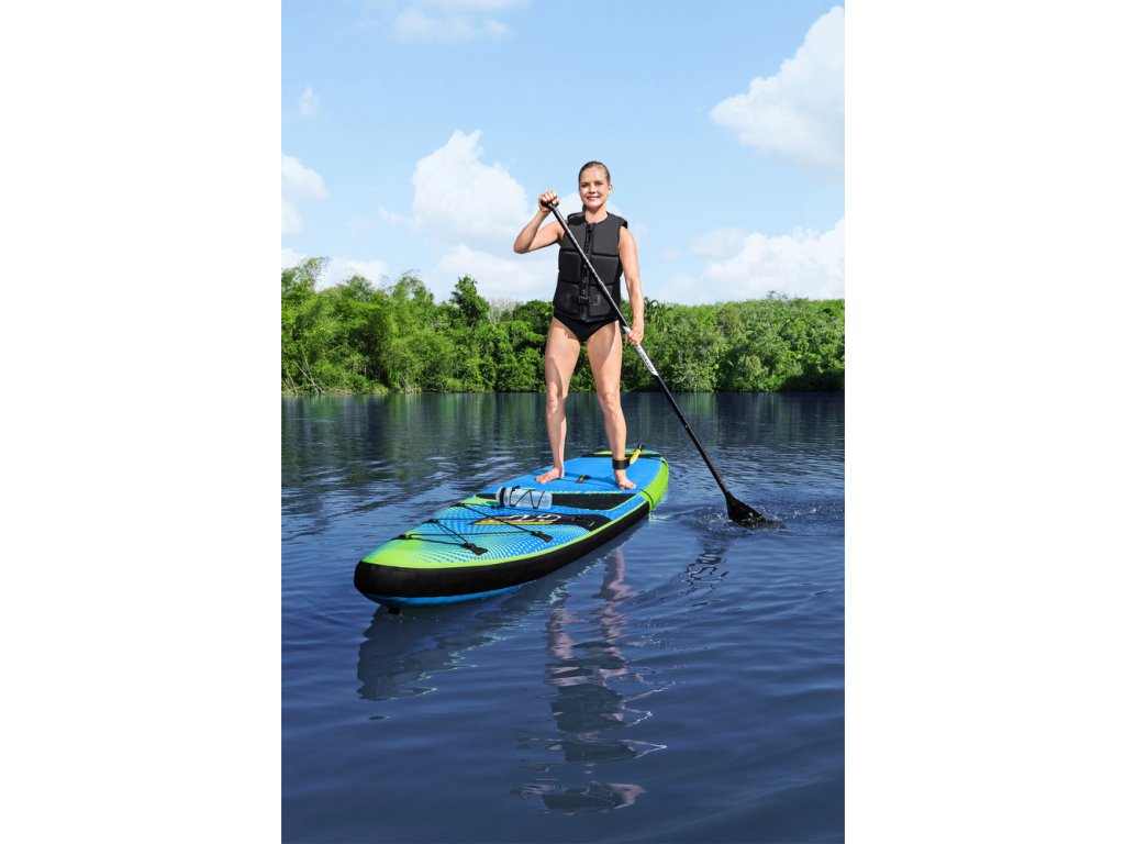 Lehké pádlo obsažené v sadě výrazně zjednodušuje způsob řízení. Odnímatelná ploutev zvyšuje sílu řízení a rychlost. Deska má velkou protiskluzovou trakční podložkou, která pomáhá udržet rovnováhu.