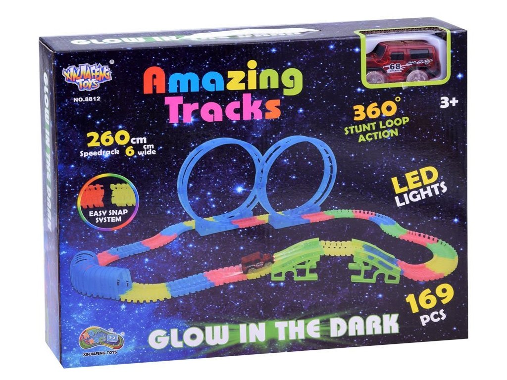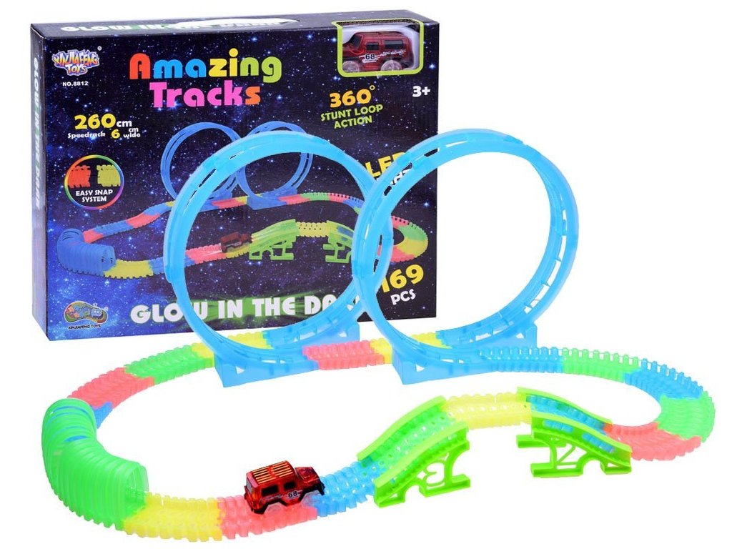 Svítící autodráha Magic Tracks obsahuje: