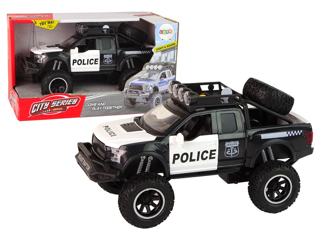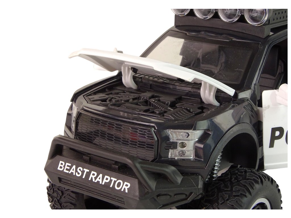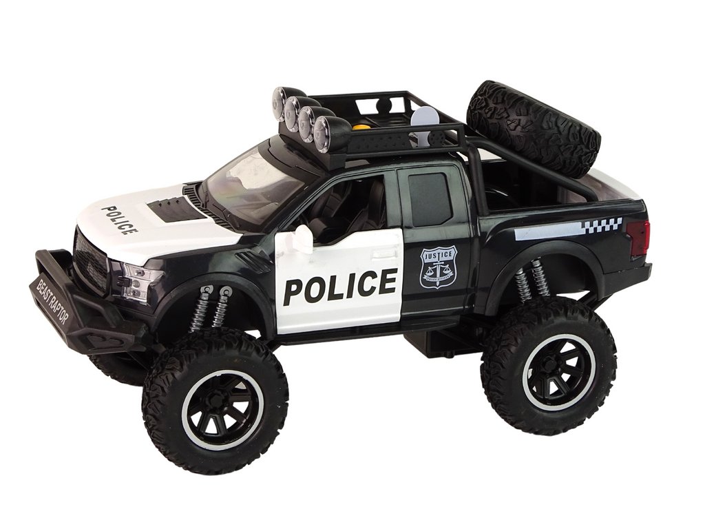 Terénní vozidlo Raptor Policie černé s otevíracími dveřmi, zvuky a světly