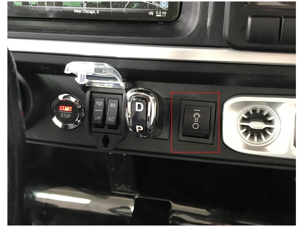 Tlačítko pro zapnutí a vypnutí světel v dětském elektrickém autíčku