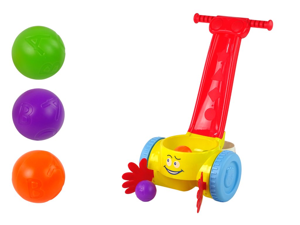 V balení jsou 3 míčky a sběrač s usměvavou tváří a rukojeťmi, který zaujme vaše dítě. Na míčcích jsou umístěny čísla od 1 do 3 a první tři písmena abecedy, perfektní pro první učení. Hračka je velmi jednoduchá na použití.