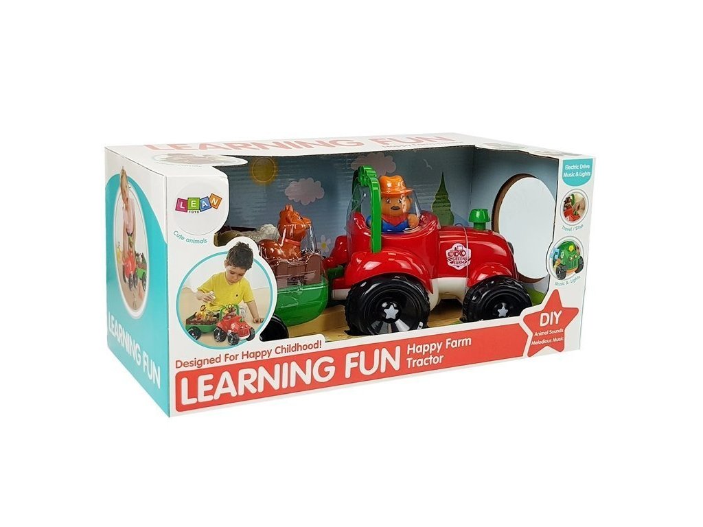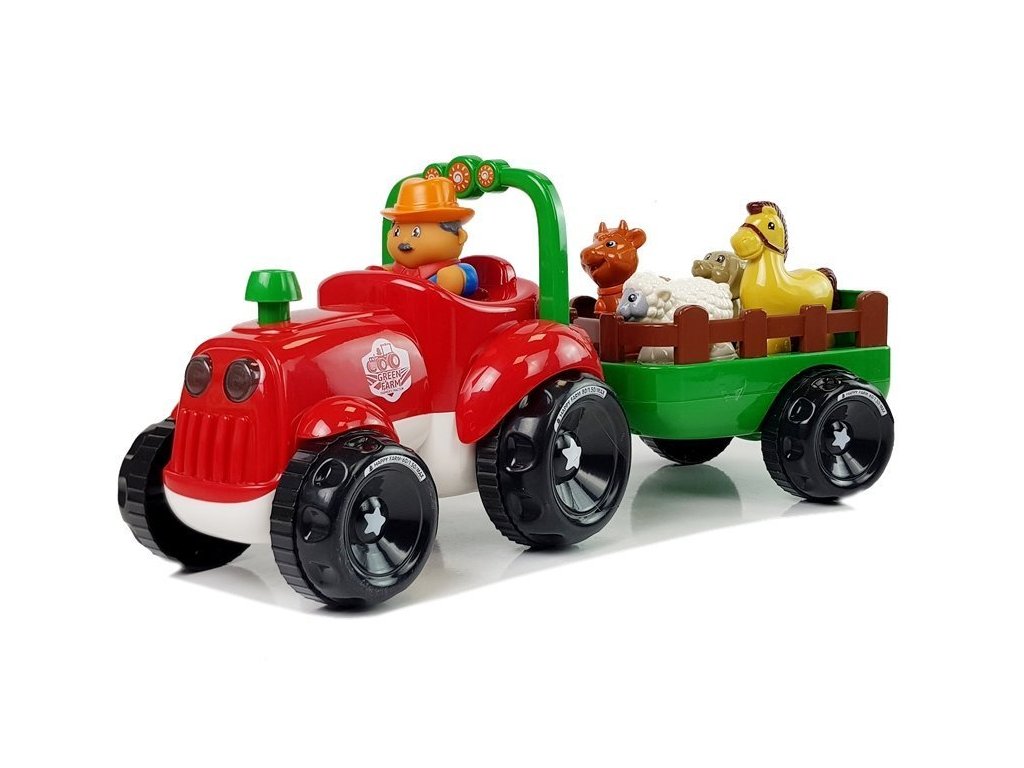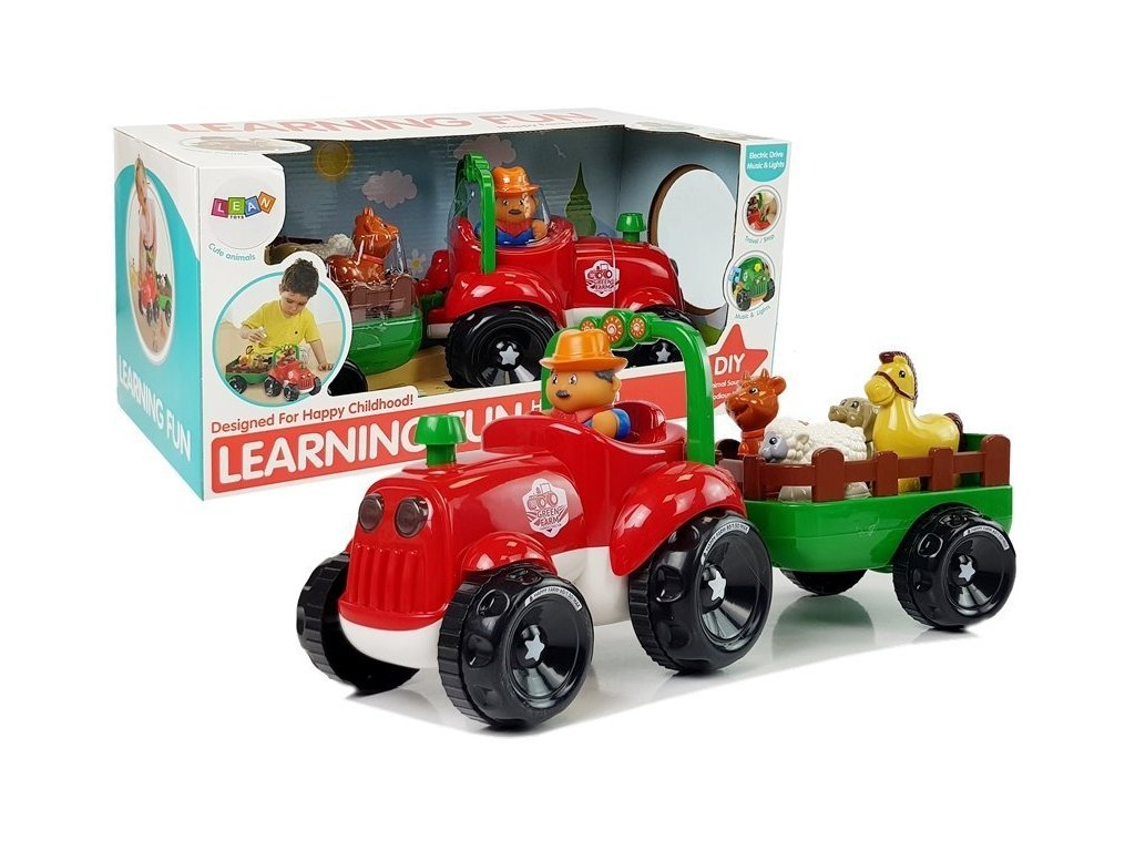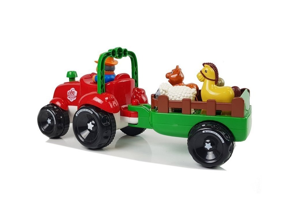 Traktor je vybaven zvukovými a svítícími efekty. Po zmáčknutí komínu se traktor rozjede vpřed.