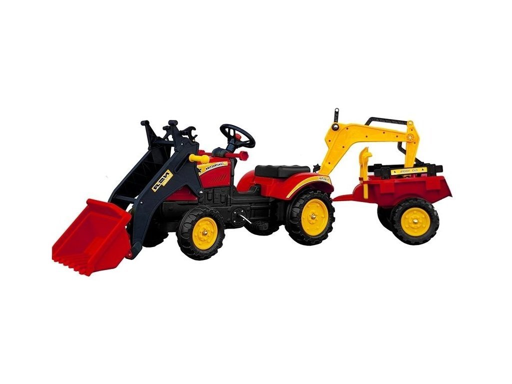 Velký šlapací traktorbagr s přívěsem