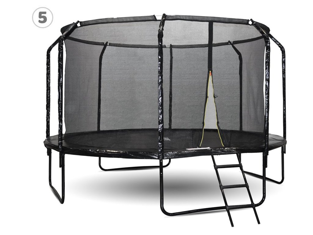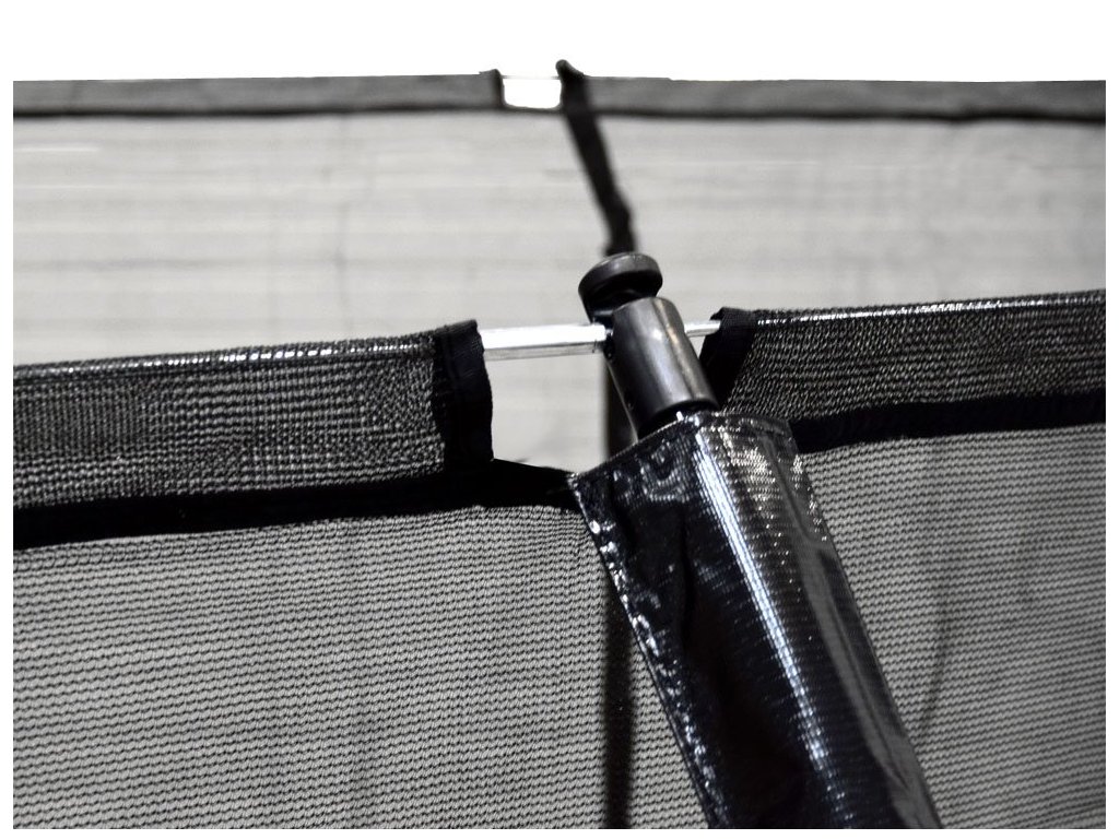 - Trubky jsou připevněny k nohám trampolíny silnými šrouby