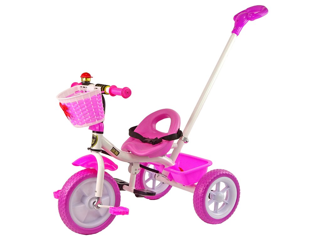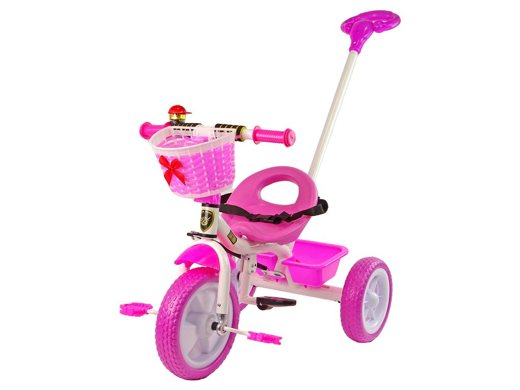 Dětská tříkolka s vodící tyčí PRO100 růžová