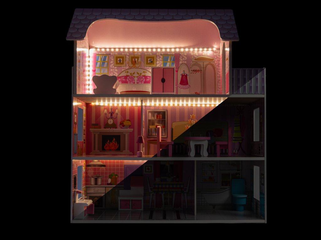 - Pečlivý design: Každé patro domečku je detailně vyzdobeno, s malovanými stěnami, podlahami a okny.