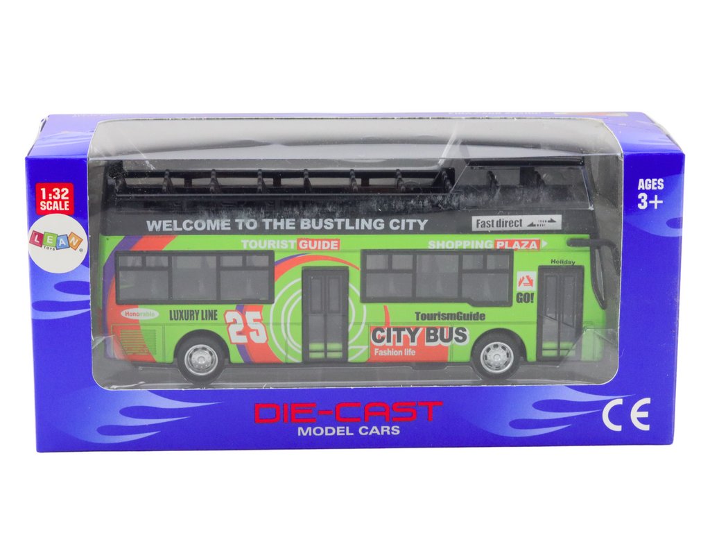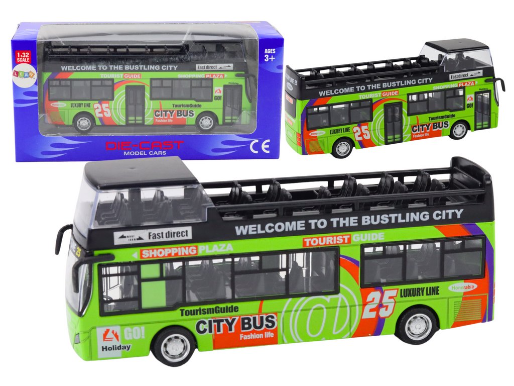 Turistický dvoupatrový autobus 1:32 s otevíracími dveřmi zelený