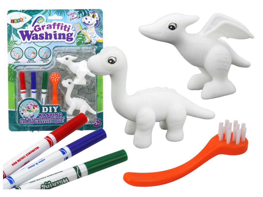 Naše dinosauří figurky jsou určeny k opakovanému malování. Po skončení zábavy je stačí umýt vodou pomocí přiloženého kartáčku, aby byly připravené na další uměleckou seanci. Je to skvělá příležitost k neustálému objevování, učení a hraní, zajišťující mnoho hodin zábavy a vzdělávání pro každého mladého badatele dinosaurů!