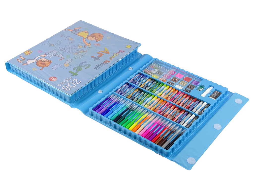 Vícebarevná sada pastelek, barev a fixů umožňuje dlouhou dobu hraní a umožňuje sdílet obsah s ostatními dětmi. Vše zabaleno v praktickém pouzdře.